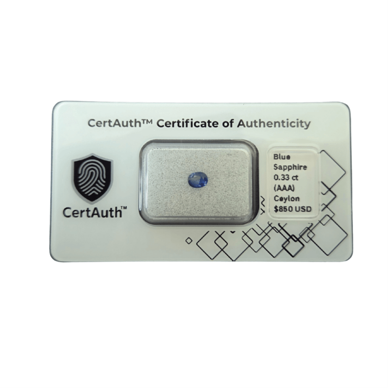 CEYLON BLUE SAPPHIRE – 0.33CT, CERTIFIED BY CERTAUTH A Stunning Untreated Royal Blue Sapphire From Ceylon, Displaying Exceptional Brilliance And Vivid Saturation. This Precision-Cut Oval Gem Embodies The Classic Allure And Elegance Of Top-Quality Sri Lankan Corundum.Details:• Gemstone: Blue Sapphire (Corundum)• Weight: 0.33 Ct• Colour: Royal Blue• Shape/Cut: Oval Faceted Cut• Dimensions: 4.90 × 4.00 × 2.00 Mm• Clarity: Transparent, Grade Aaa• Treatment: Untreated• Origin: Ceylon (Sri Lanka)• Certification: Certauth No. Ca186353• Estimated Value: Usd $850Comments:Intense Royal Blue Hue With Fine Vs Clarity And Lively Brilliance. A Highly Collectible Untreated Sapphire, Ideal For Fine Jewellery Or Investment. Condition: Good - Refer Images 0488342+186353