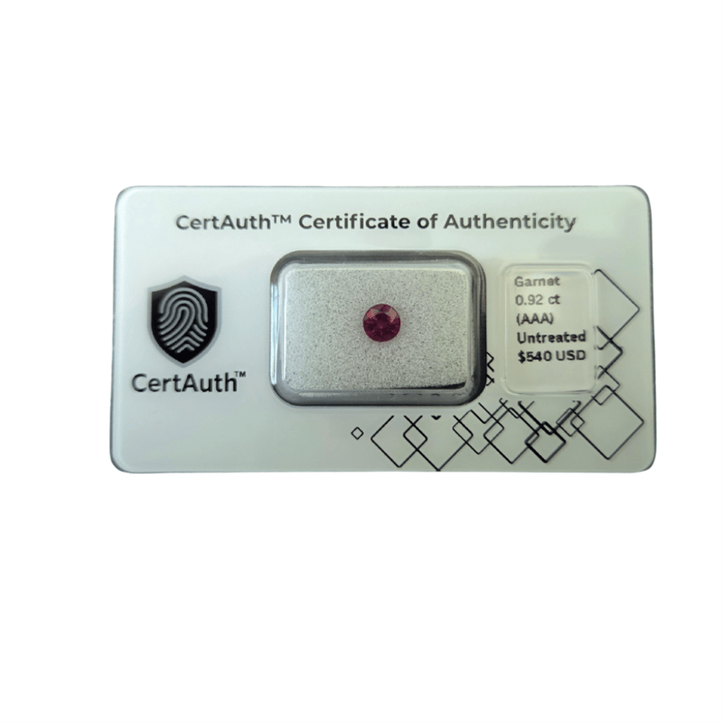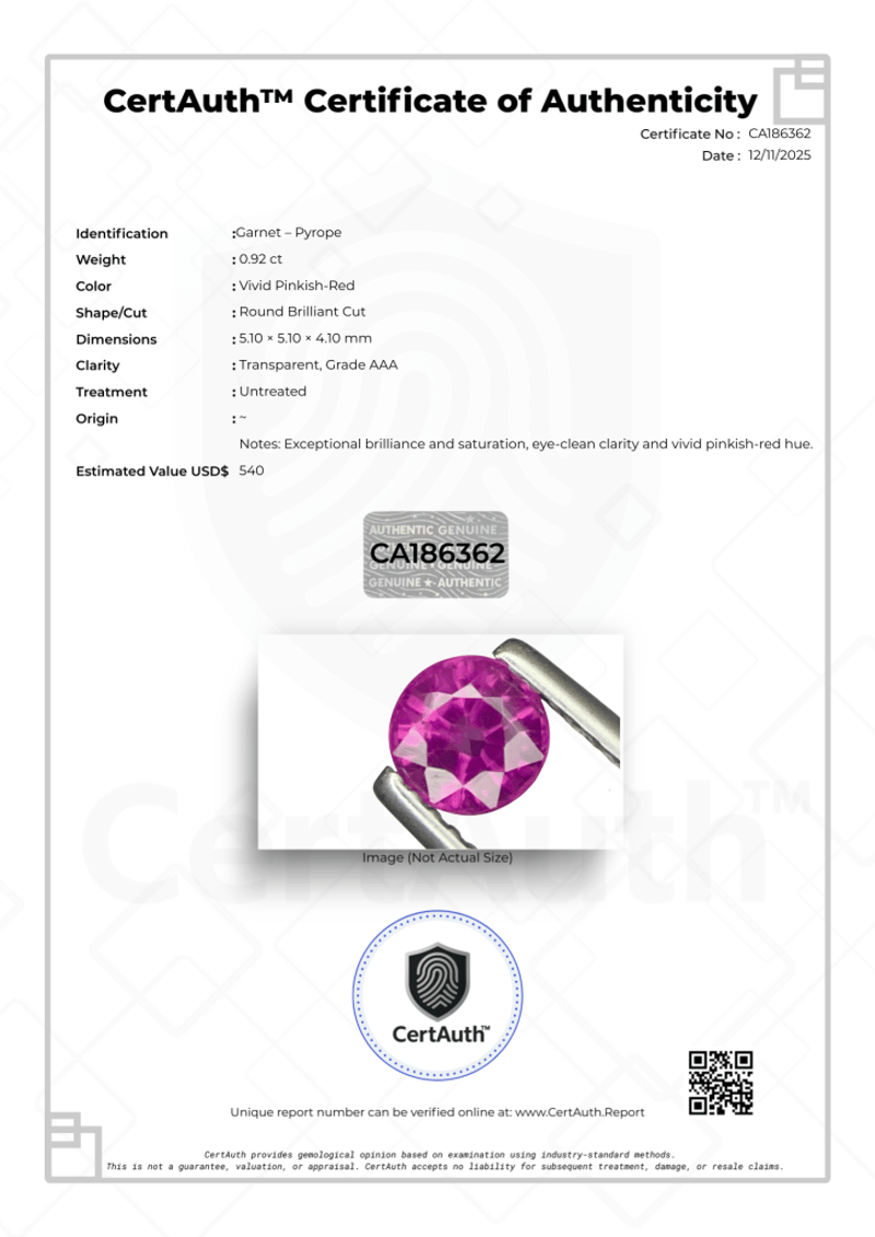 VIVID PINKISH-RED GARNET – 0.92CT, CERTIFIED BY CERTAUTH
