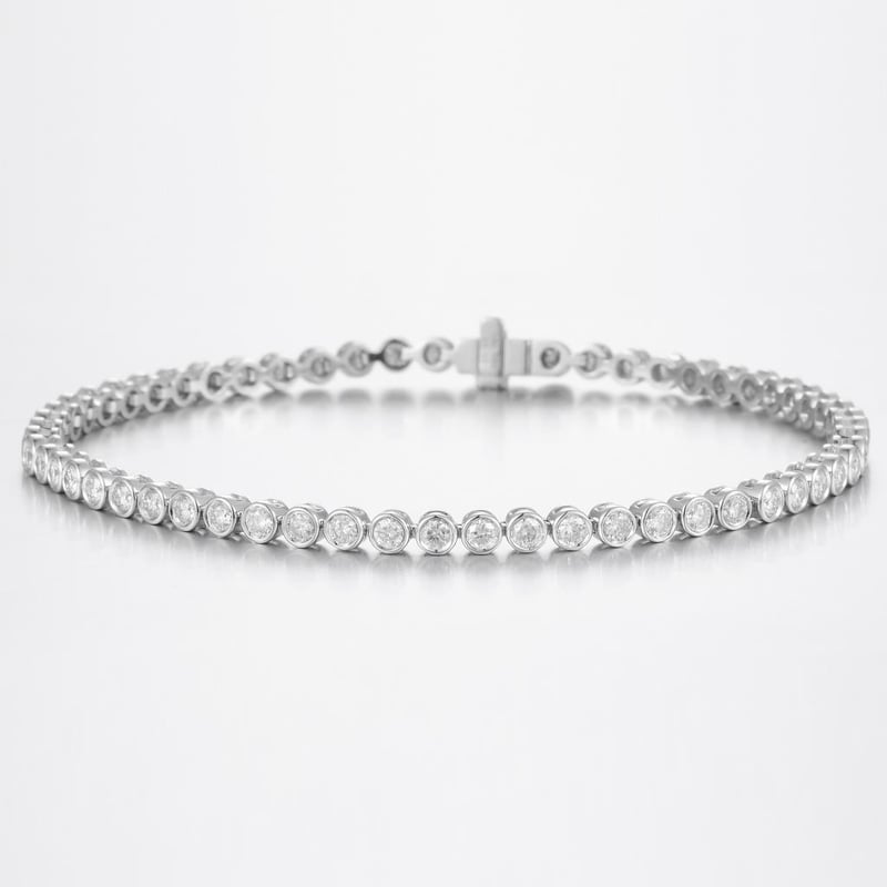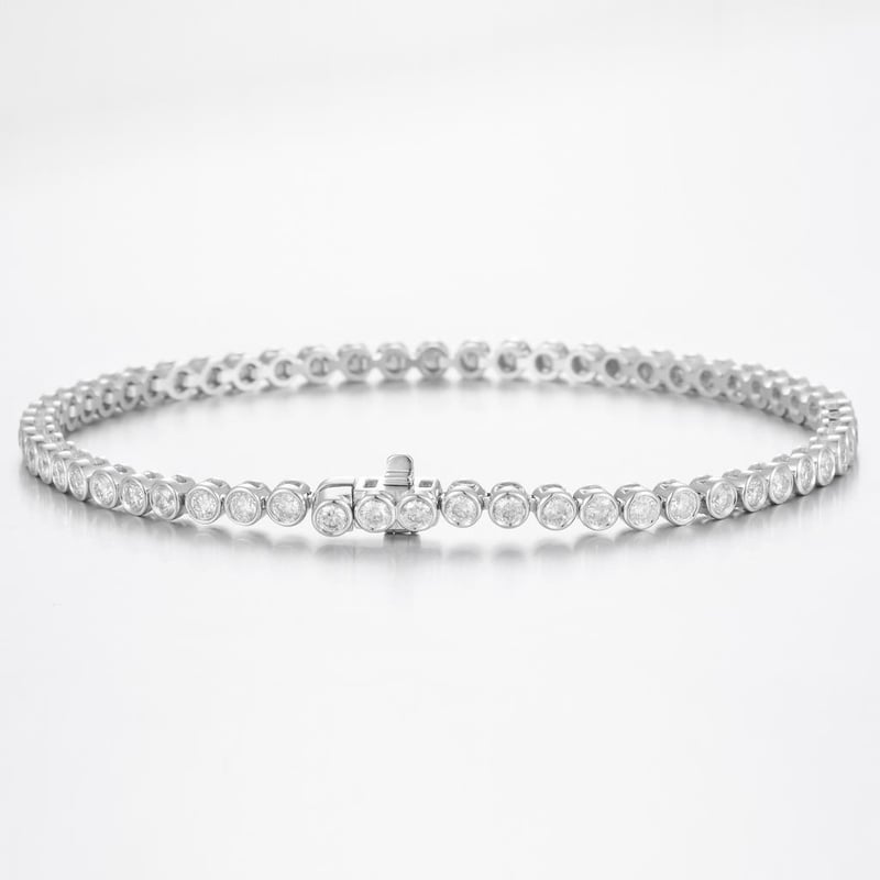 14Ct White Gold Diamond Tennis Bracelet Featuring, 59 Round Brilliant Cut Diamonds (2.03Ct Tdw, G-H Colour, Vs2-Si1 Clarity), Bezel Set. Bracelet Length 18Cm.