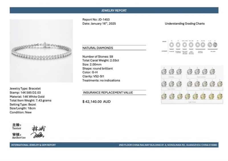 This Insurance Valuation has been provided by a registered Jewellery Valuer and is intended for insurance purposes only. The valuation amount has no bearing on the auction value of the item. Any questions regarding the valuation should be directed to the issuing Valuer (refer to contact details on the certificate) as Lloyds have no association or relationship with the Valuer or the valuation amount contained within the valuation.