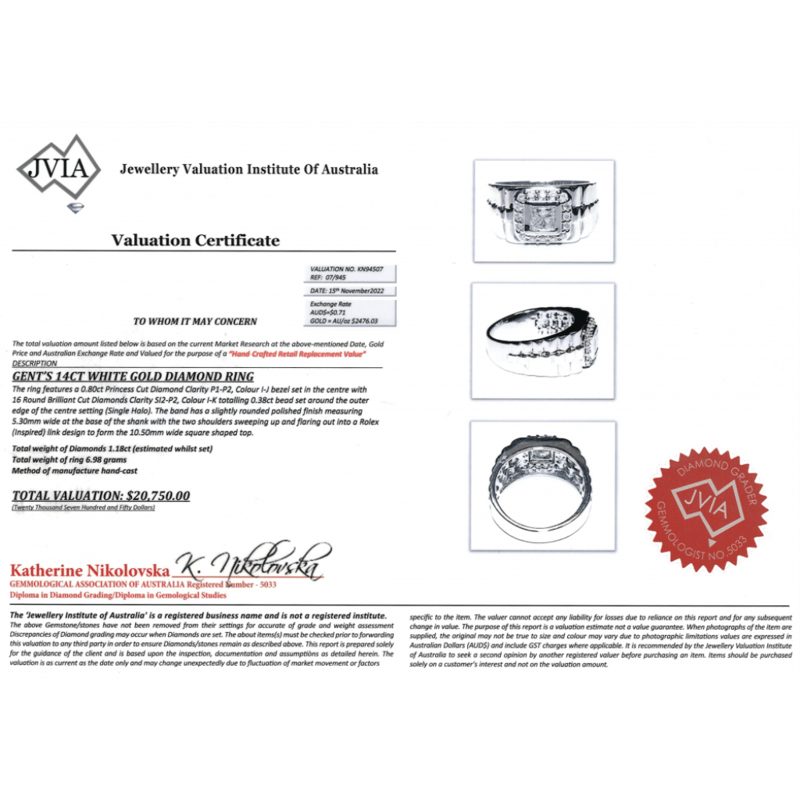 This Insurance Valuation has been provided by a registered Jewellery Valuer and is intended for insurance purposes only. The valuation amount has no bearing on the auction value of the item. Any questions regarding the valuation should be directed to the issuing Valuer (refer to contact details on the certificate) as Lloyds have no association or relationship with the Valuer or the valuation amount contained within the valuation.