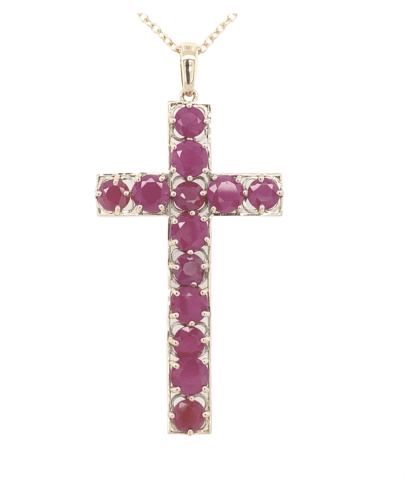 9CT YELLOW GOLD RUBY CROSS PENDANT – 7.40CT NATURAL RUBIES, CROWN JEWELLERY VALUATION A$10,850