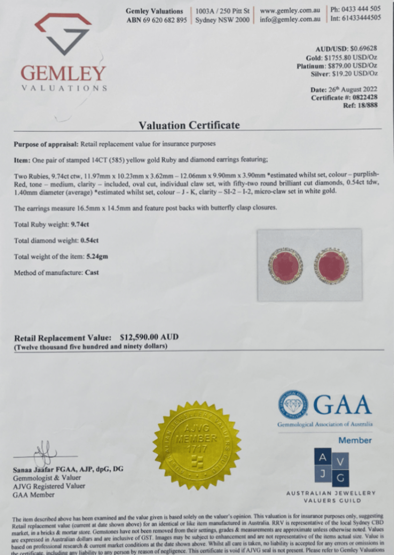 • Certification: Gemley Valuations Certificate #0822428 (Ajvg Registered Valuer Sanaa Jaafar Fgaa, Gaa Member)