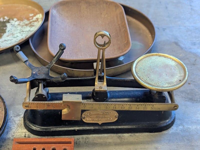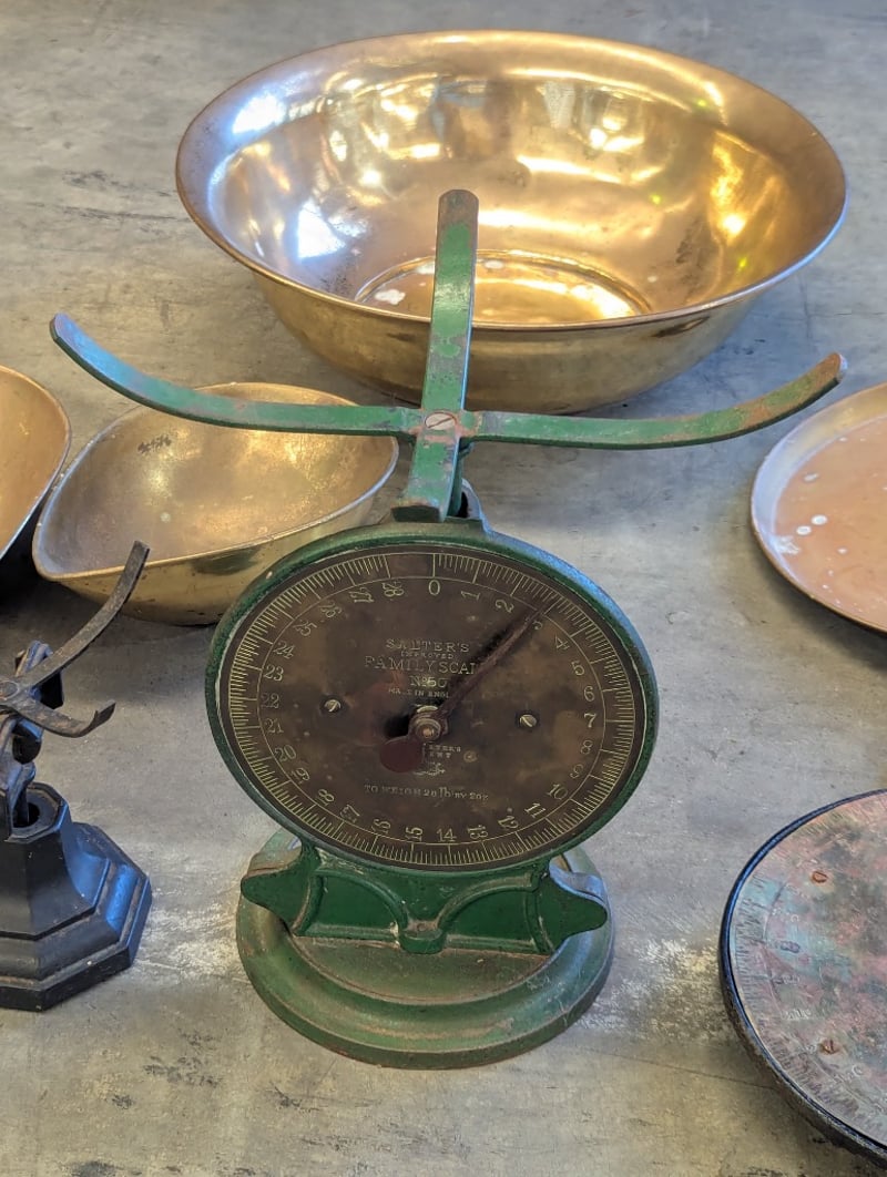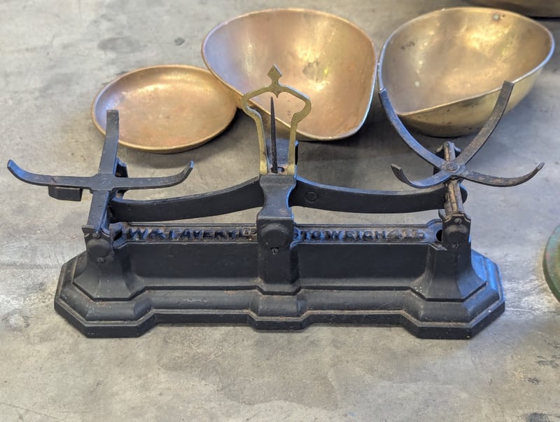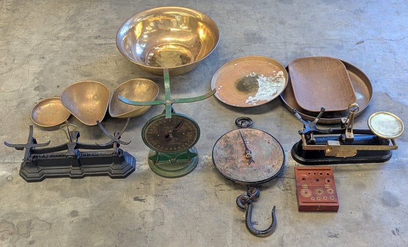 COLLECTION OF ANTIQUE STYLE SCALES AND WEIGHT DEVICES