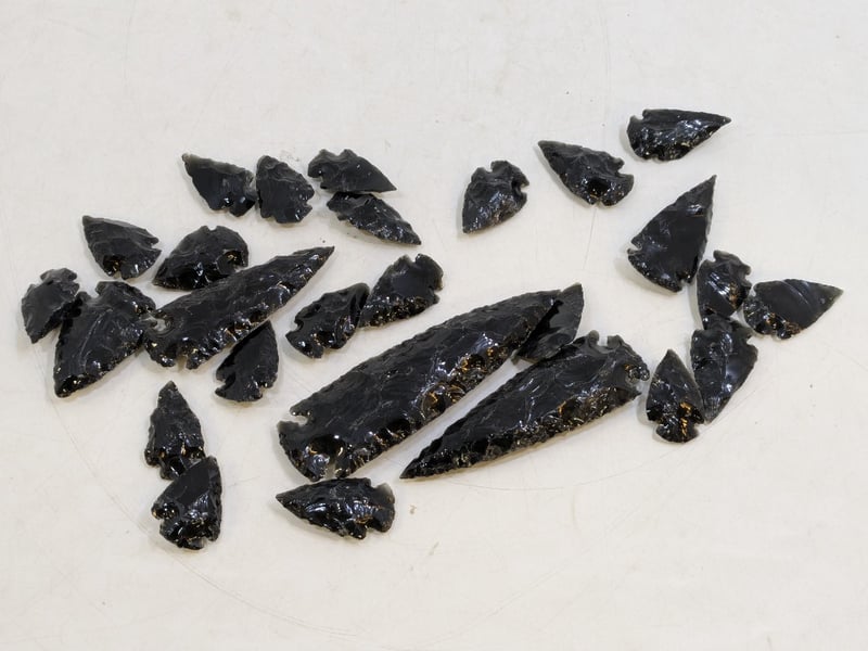 TWO DOZEN OBSIDIAN STONE ARROWHEADS