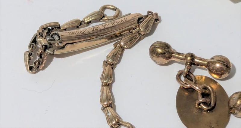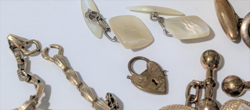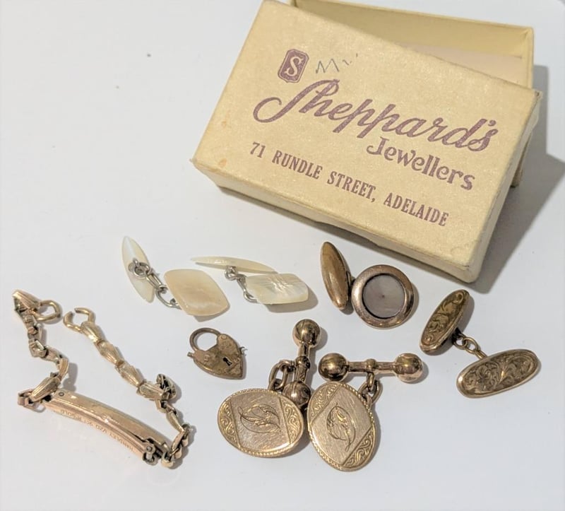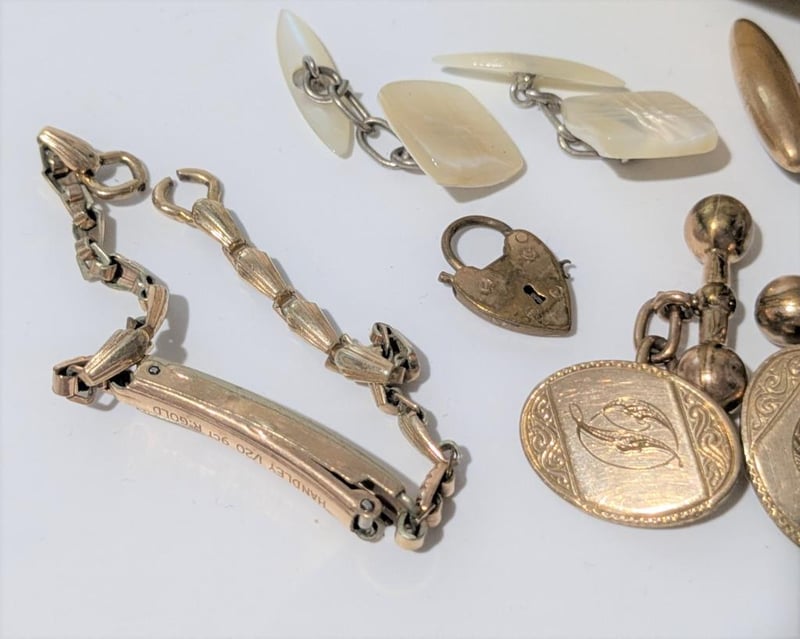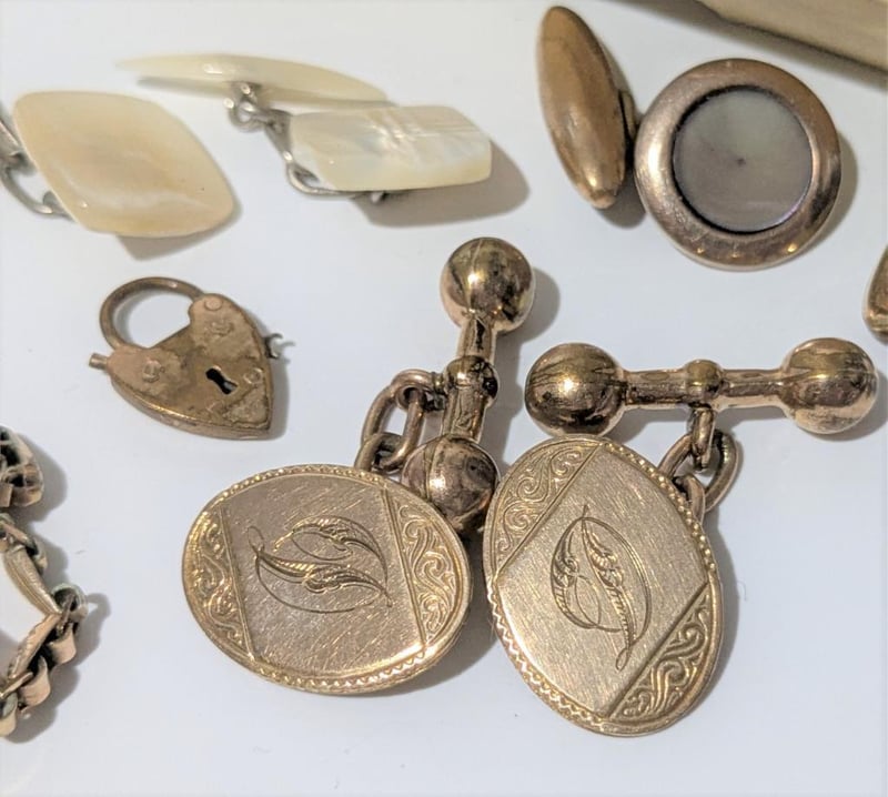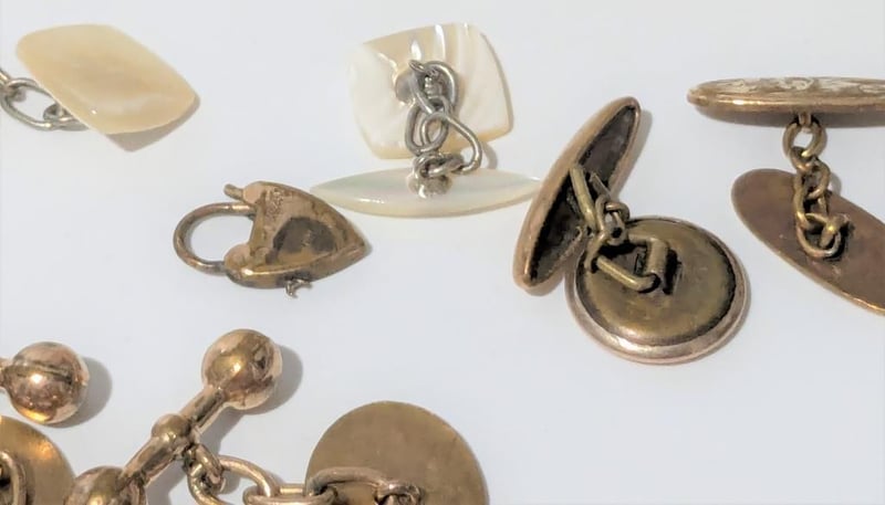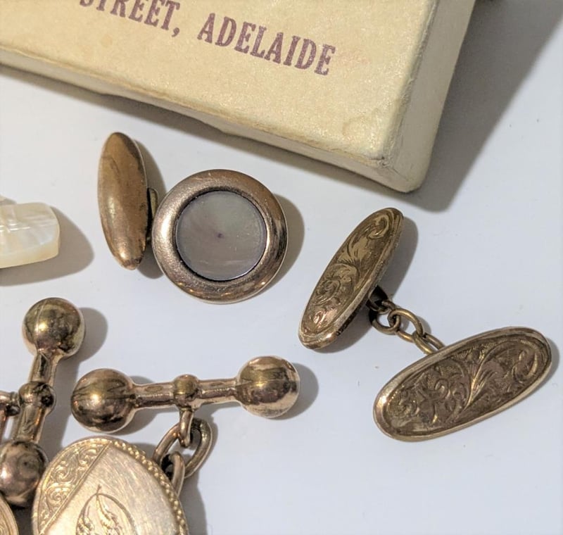CUFFLINK SETS, SINGLE CUFFLINKS & WATCH BAND IN SMALL BOXCondition: Good - Refer To Images+6