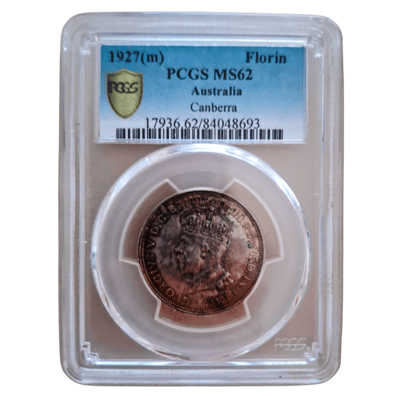 1927 (M) PCGS MS62 AUSTRALIAN FLORIN CANBERRA 92.5% SILVER