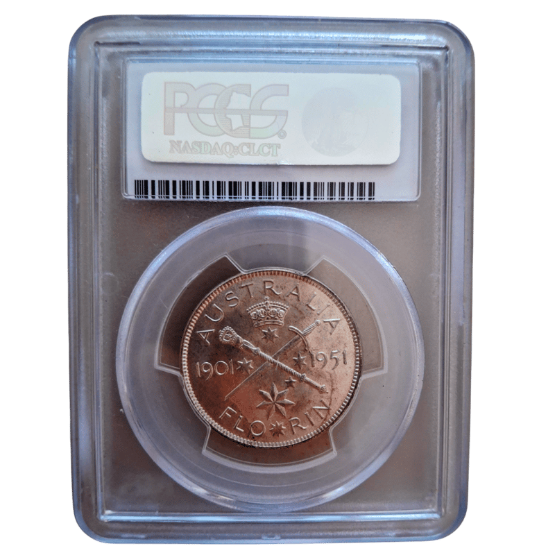 1951 (M) PCGS MS62 JUBILEE FLORIN 50% SILVER1951 (M) Pcgs Ms62 Jubilee Florin 50% SilverCondition: EF+42 Perth
