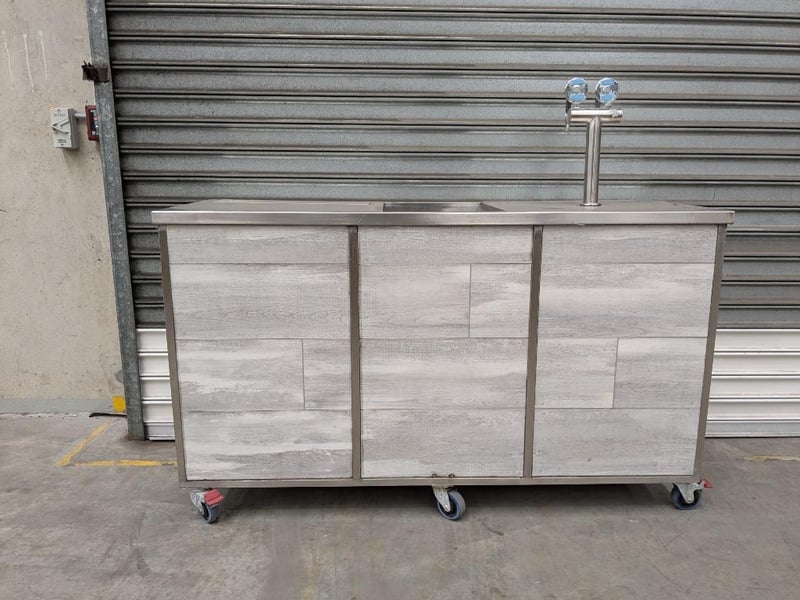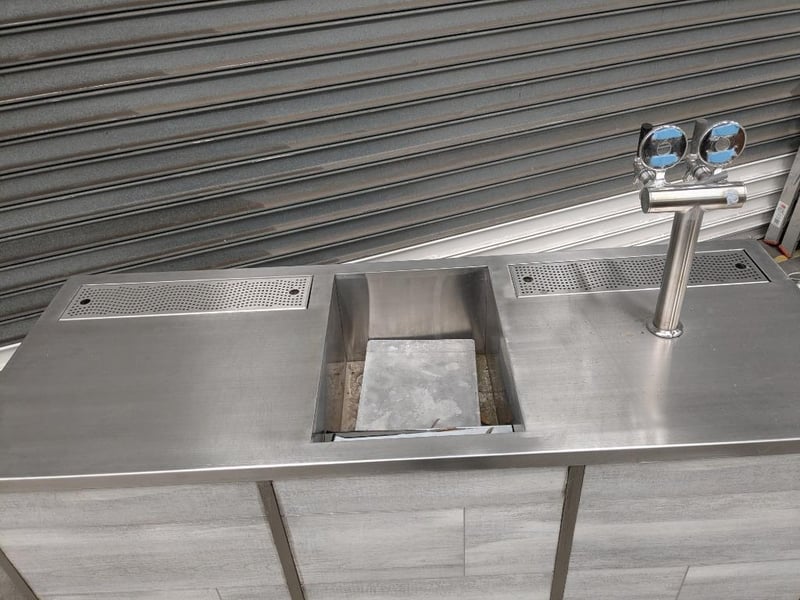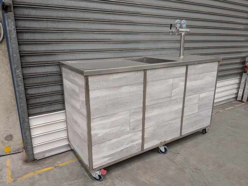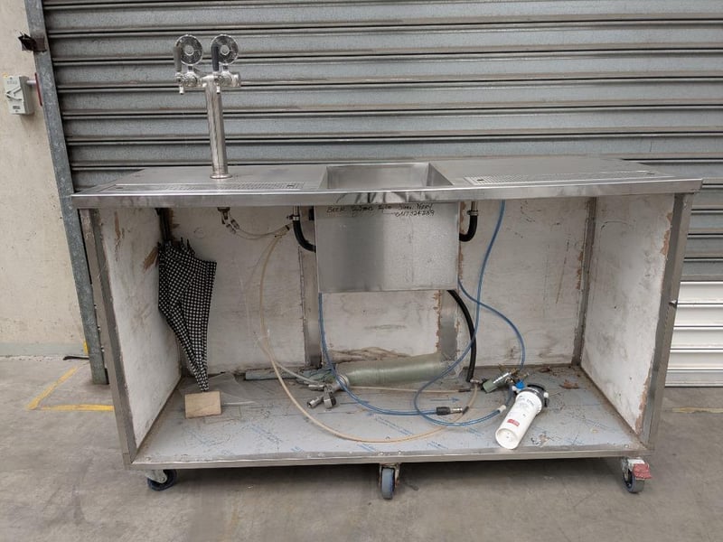 Beer bench, brand/model unknown, wood/metal type, grey/silver colourDimensions approx; 180w x 67d x 150h cm