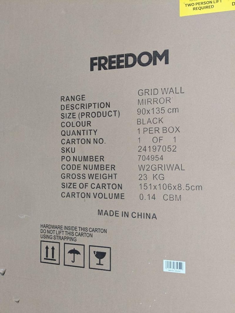 Mirror, Freedom, 24197052, blackDimensions approx; 90w x 135h x 5d cm