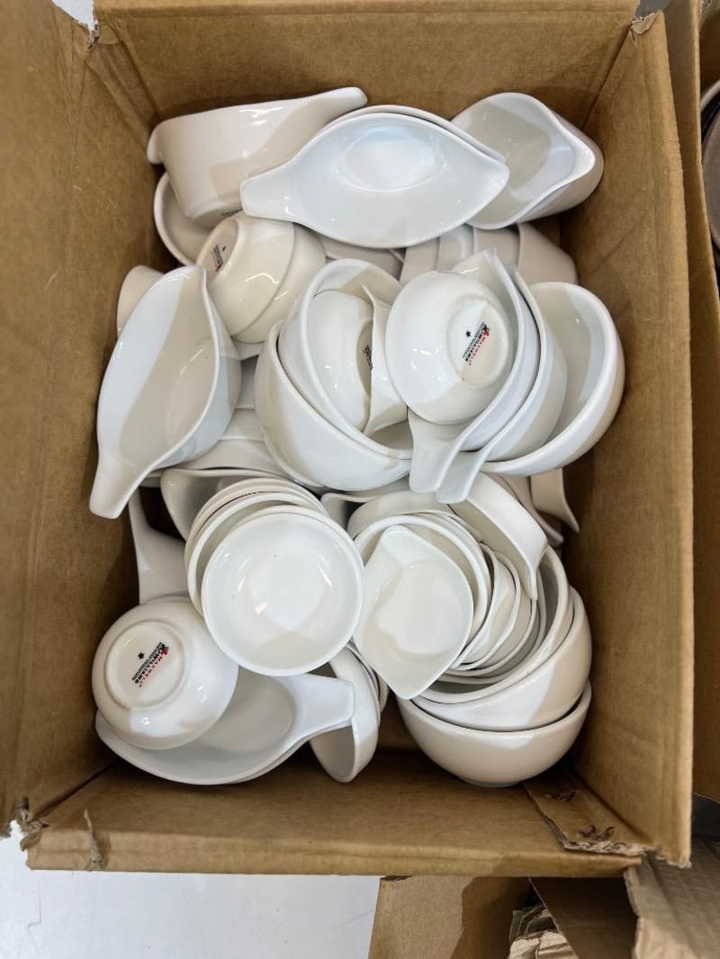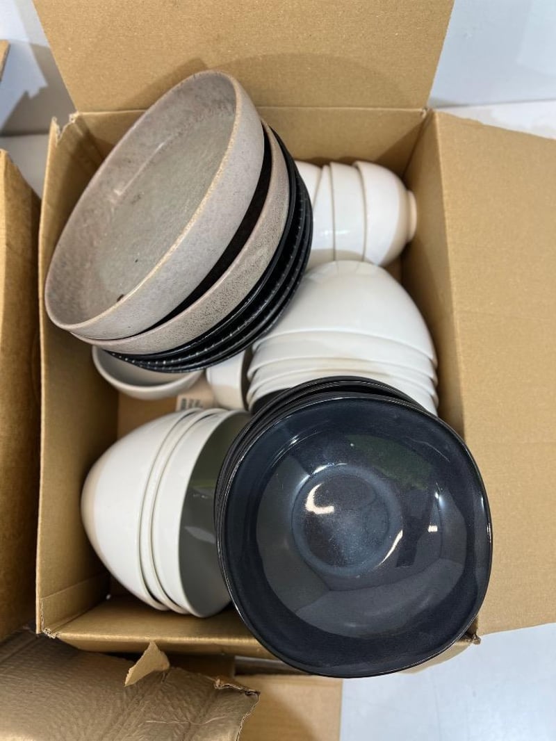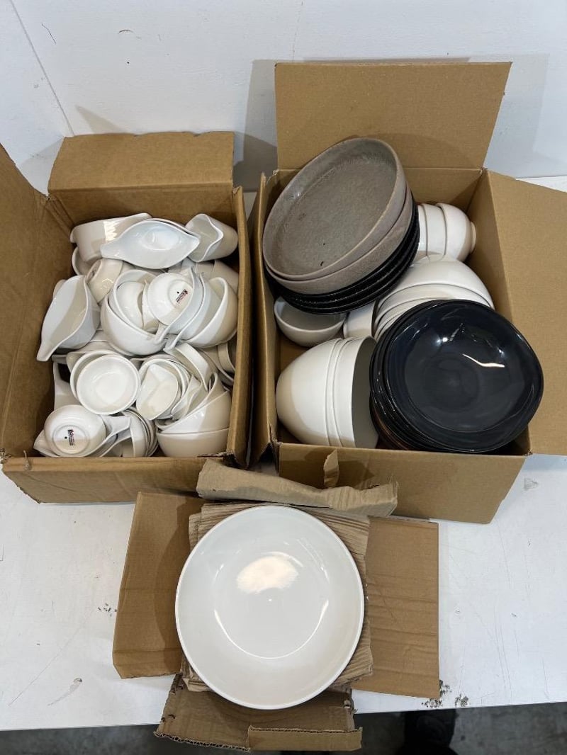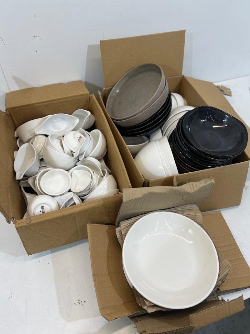 Dishware, assorted brands/ styles, includes; sauce dishes, bowls, plates ectQuantity; 3 boxes sold as lot