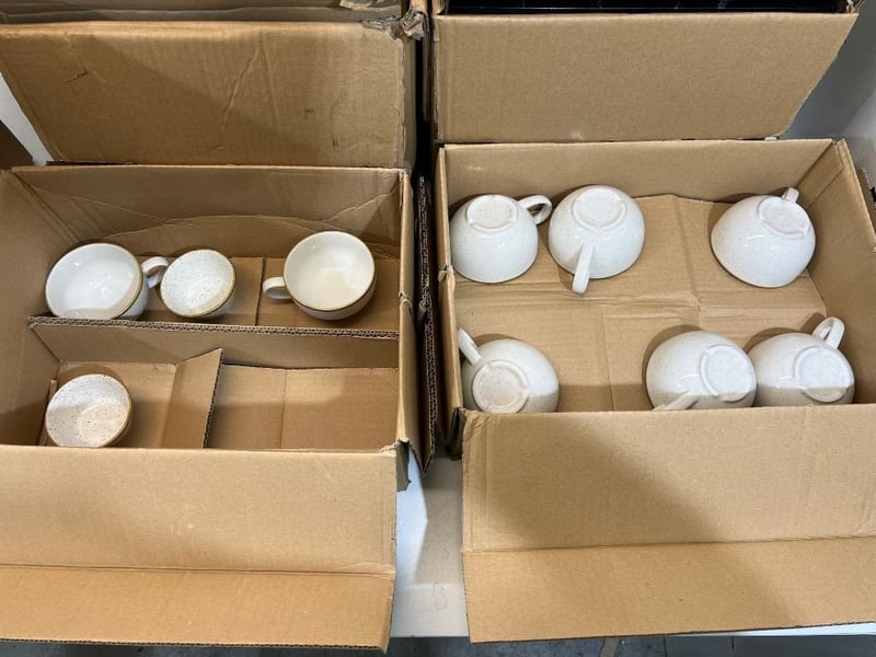 Catering/ restaurant equipment, assorted brands/ models, includes; black platters, glassware ectQuantity; 5 boxes sold as lot