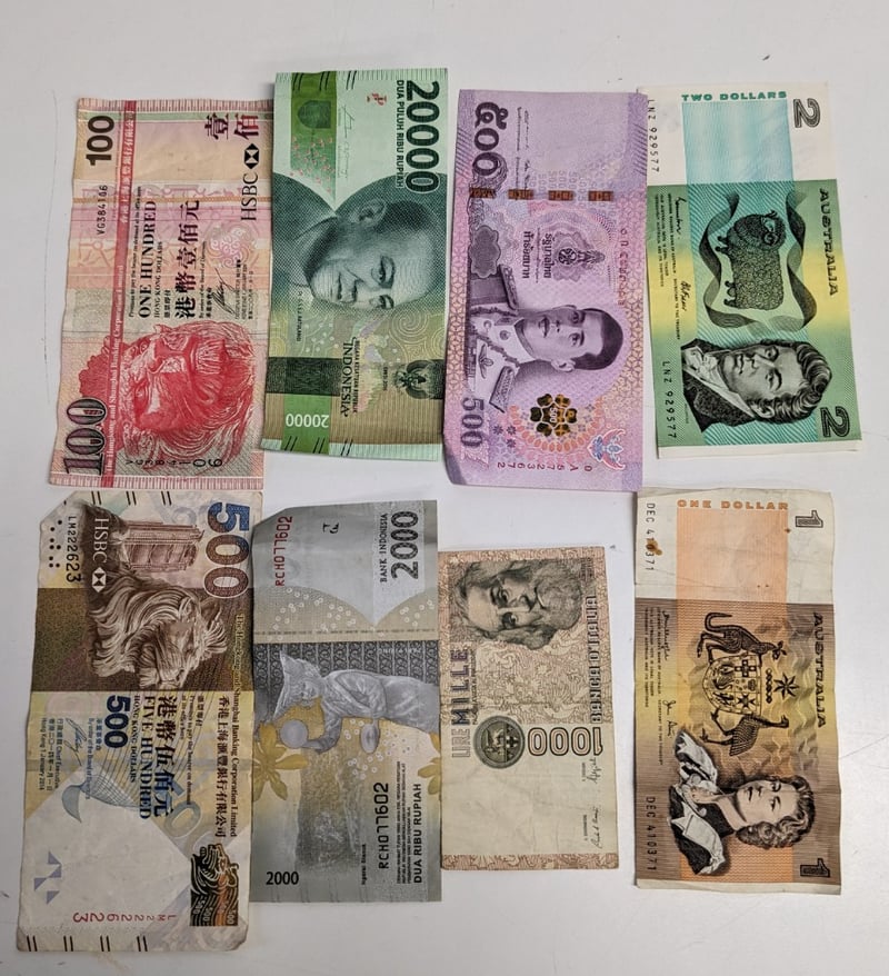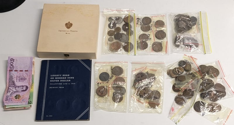 ASSORTMENT OF AUSTRALIAN & FOREIGN CURRENCY COINS, SILVER DOLLARS AND BANK NOTES