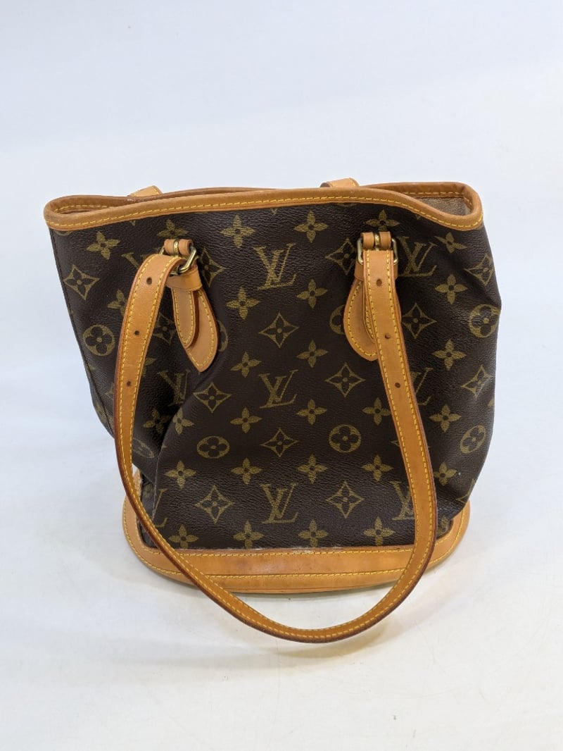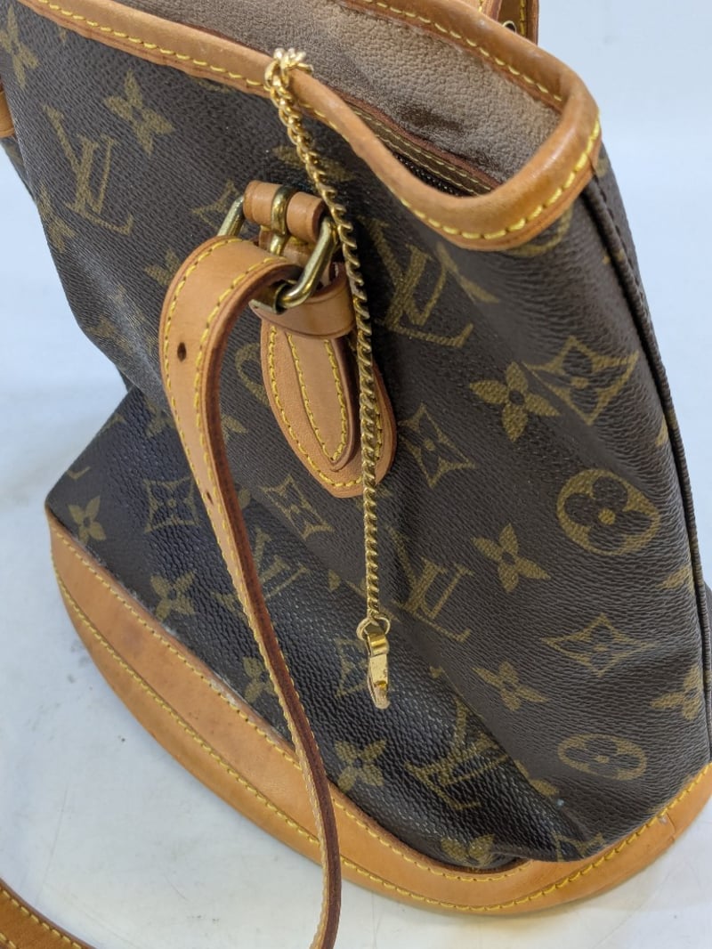 LOUIS VUITTON MONOGRAM BUCKET BAGItem Size: Height: 24cm, Width: 24cm, Depth: 4cmMonogram Coated Canvas Exterior, Cowhide Leather Trim, Two Interior Side Pouches, Interior D-Ring With Attached Clip On Chain.Condition: Good - Refer To Images585009+8