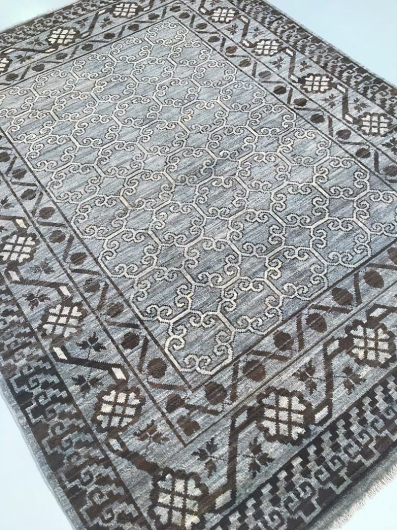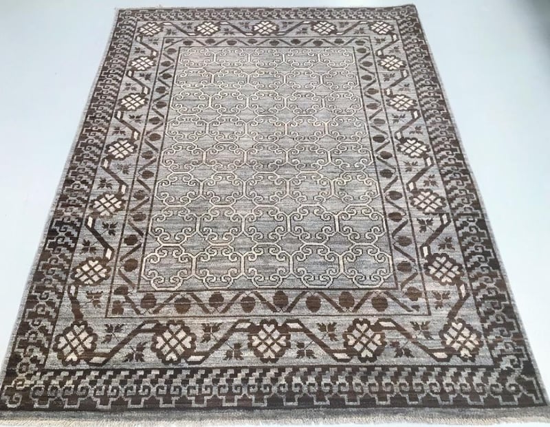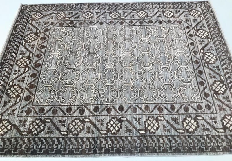 Pure Wool Nomadic Hand Knotted Afghan Turkoman Rug 196X154Cm Afghanistan