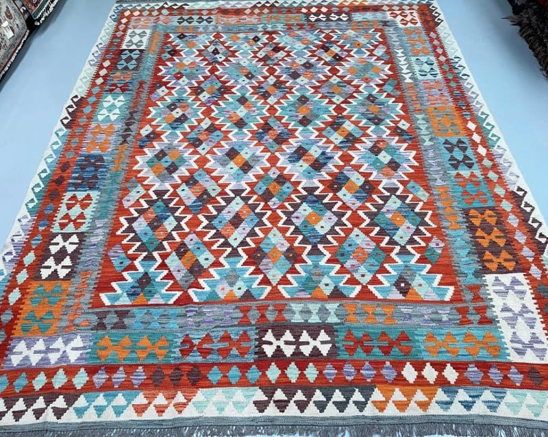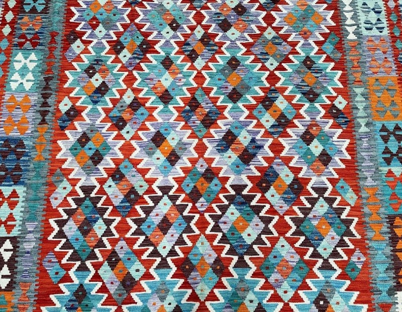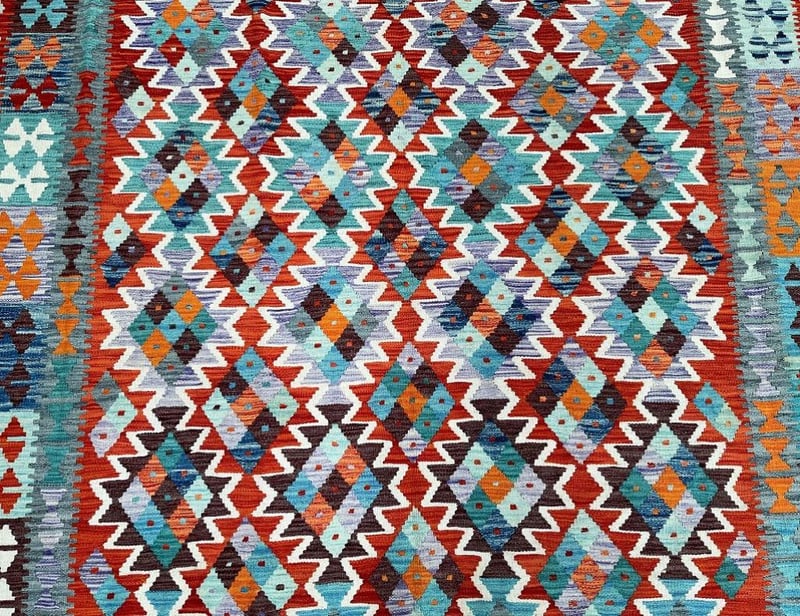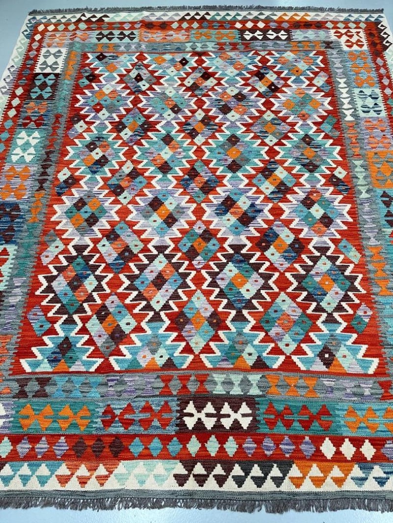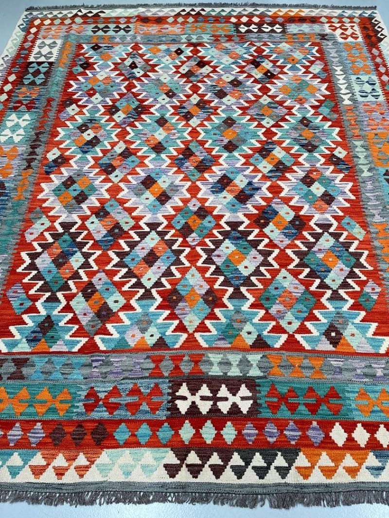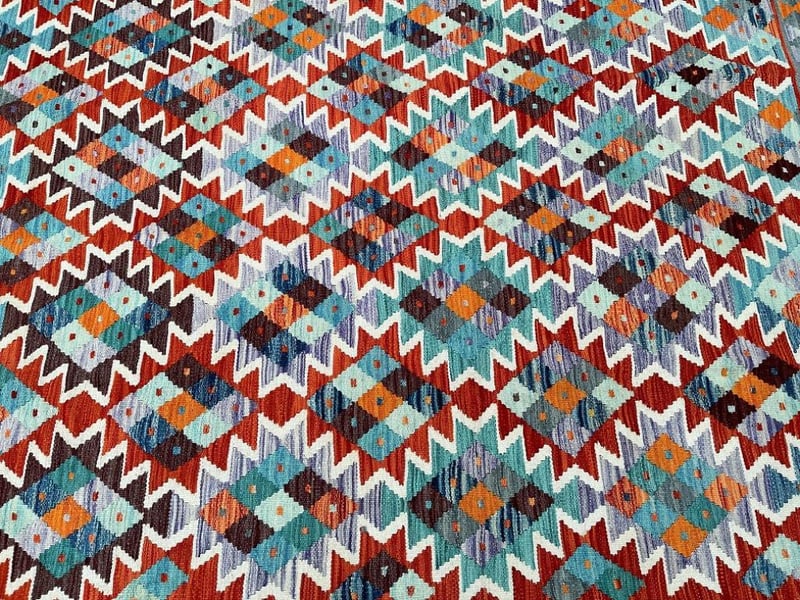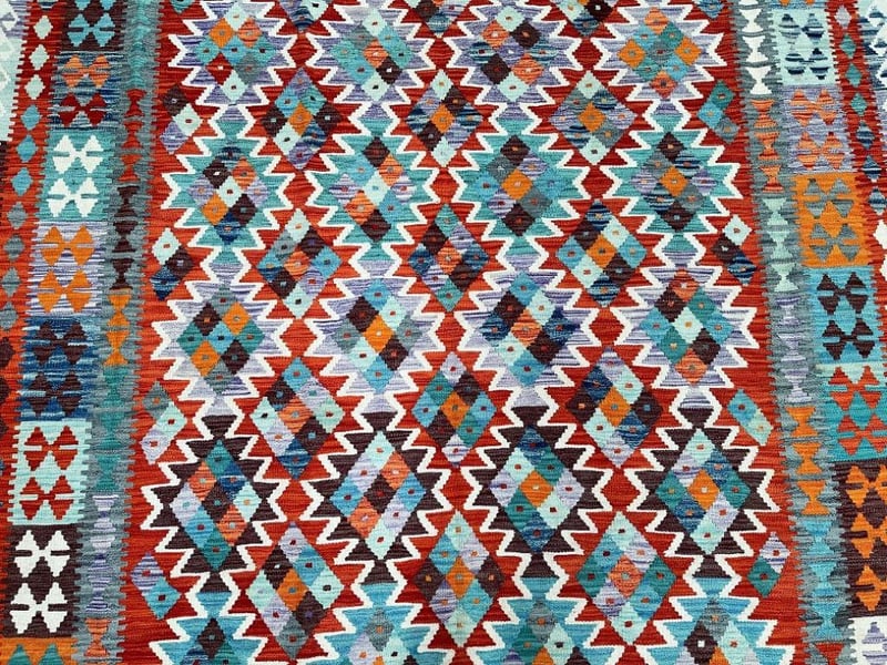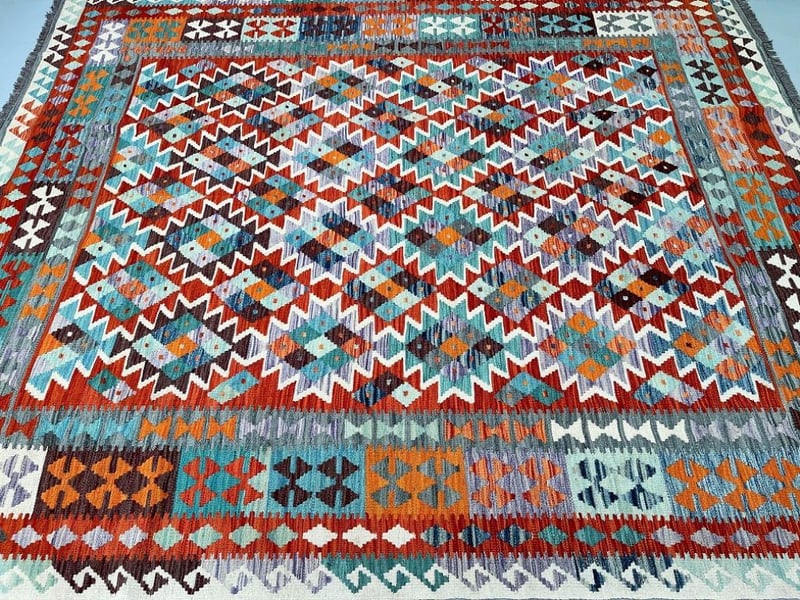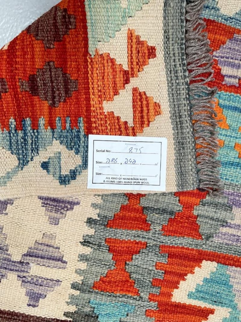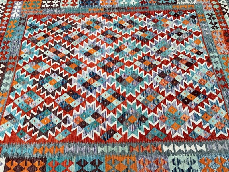 Large Room Size Wool Hand Woven Afghan Kyber Kilim Rug 286X242Cm Afghanistan+5