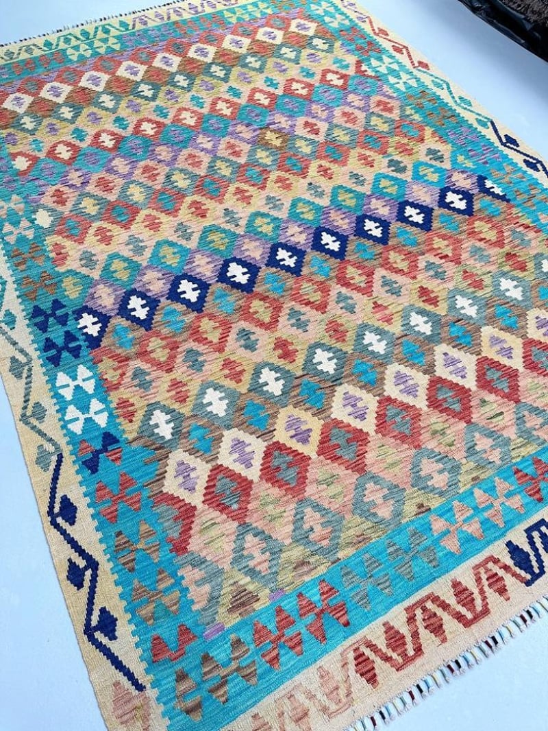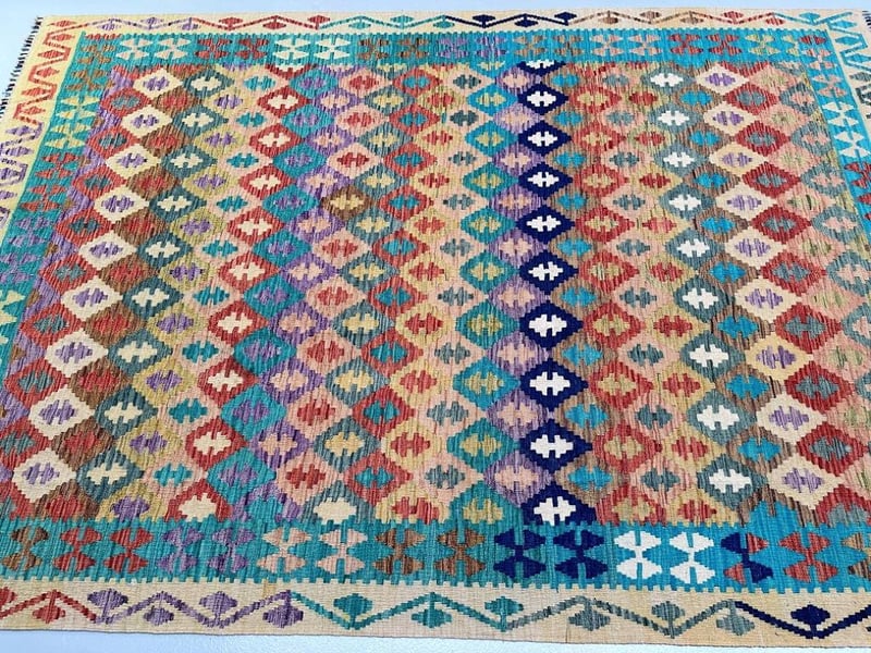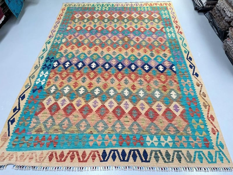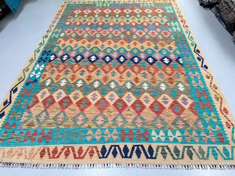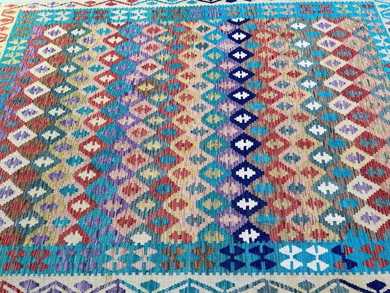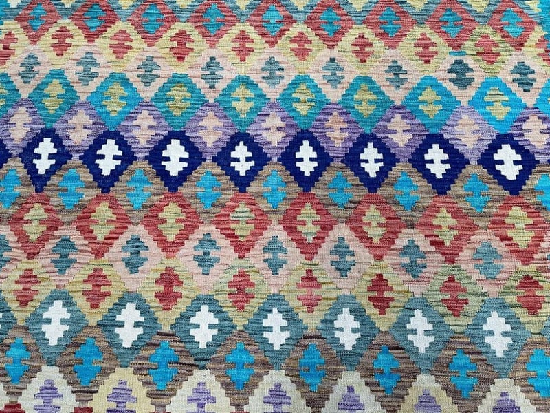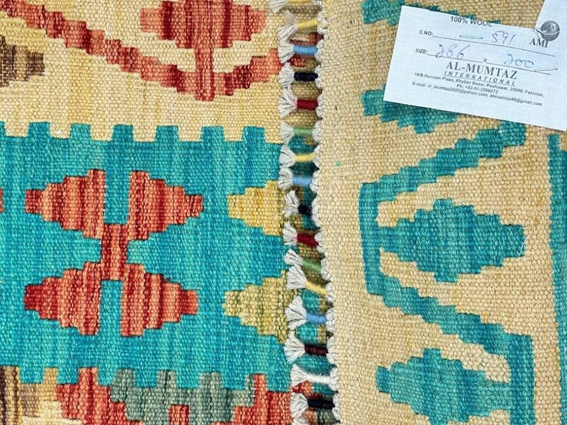 Full Room Size Wool Hand Woven Afghan Kyber Kilim Rug 286X200Cm Afghanistan+2