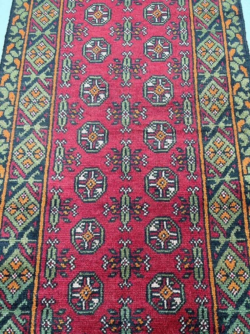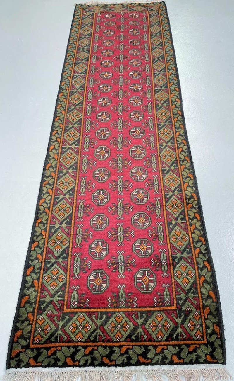 Tribal Bokhara Design Wool Hand Knotted Afghan Aqcha Hall Runner Rug 279X79Cm Afghanistan+86