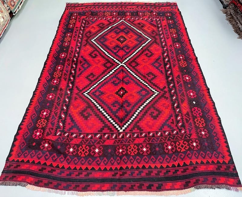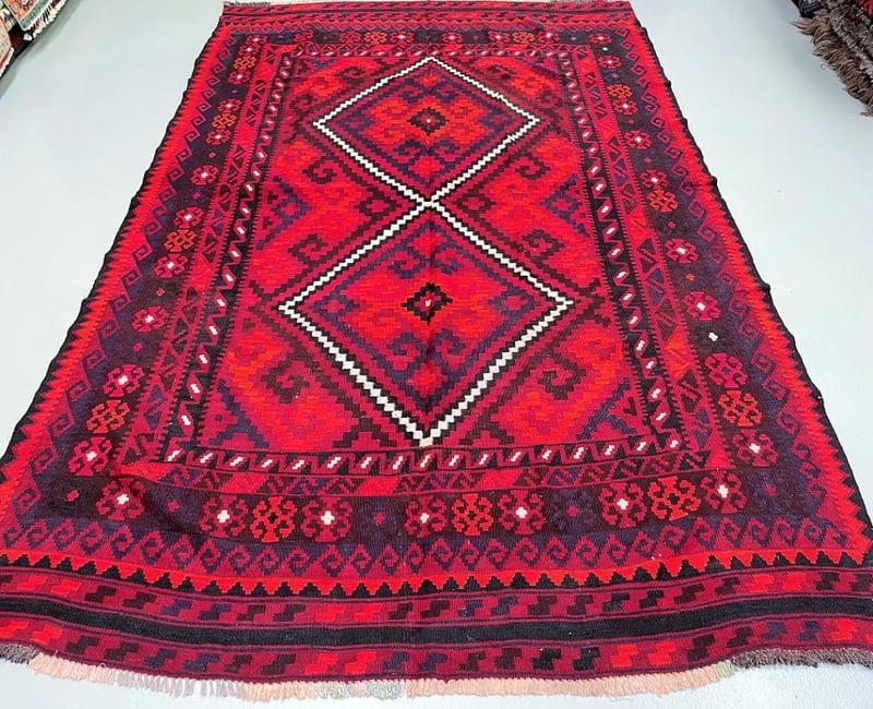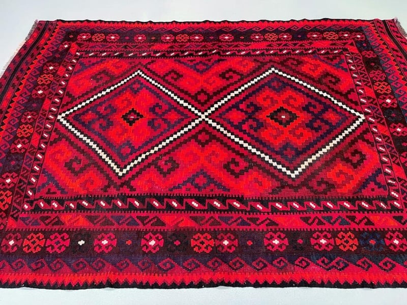 Full Room Size Wool Hand Woven Vintage Afghan Meymana Kilim Rug 278X192Cm Afghanista+28