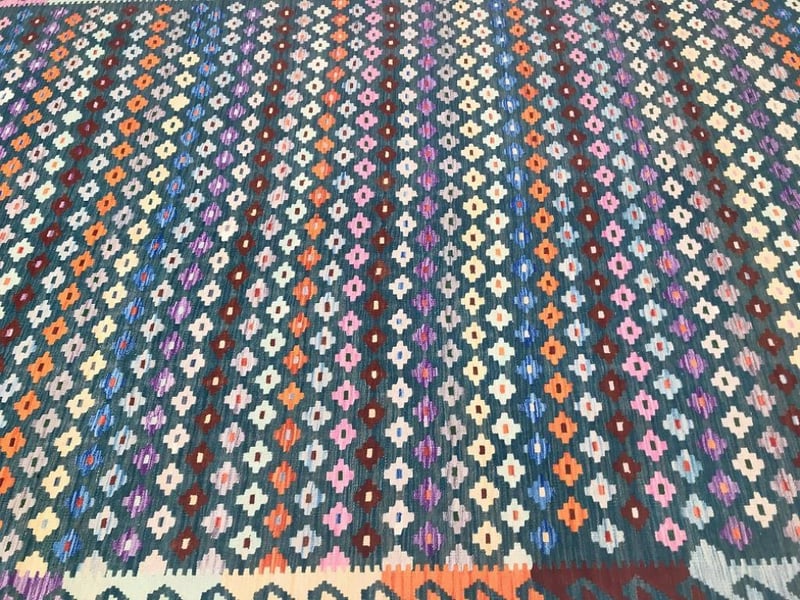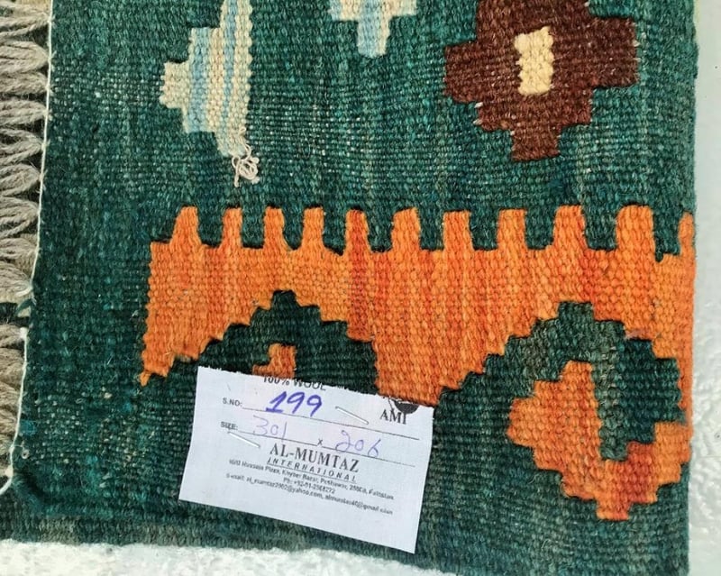 Full Roon Size Wool Contemporary Hand Woven Afghan Kyber Kilim Rug 301X206Cm Afghanistan