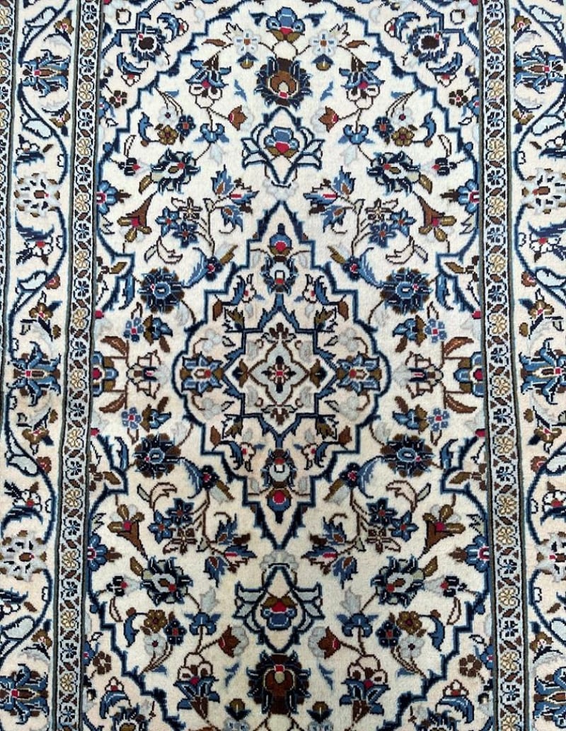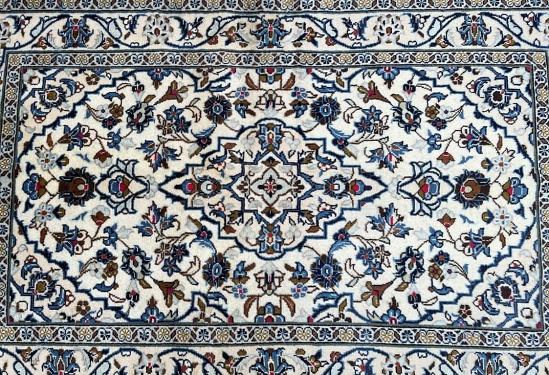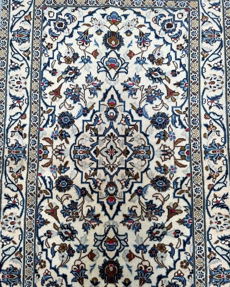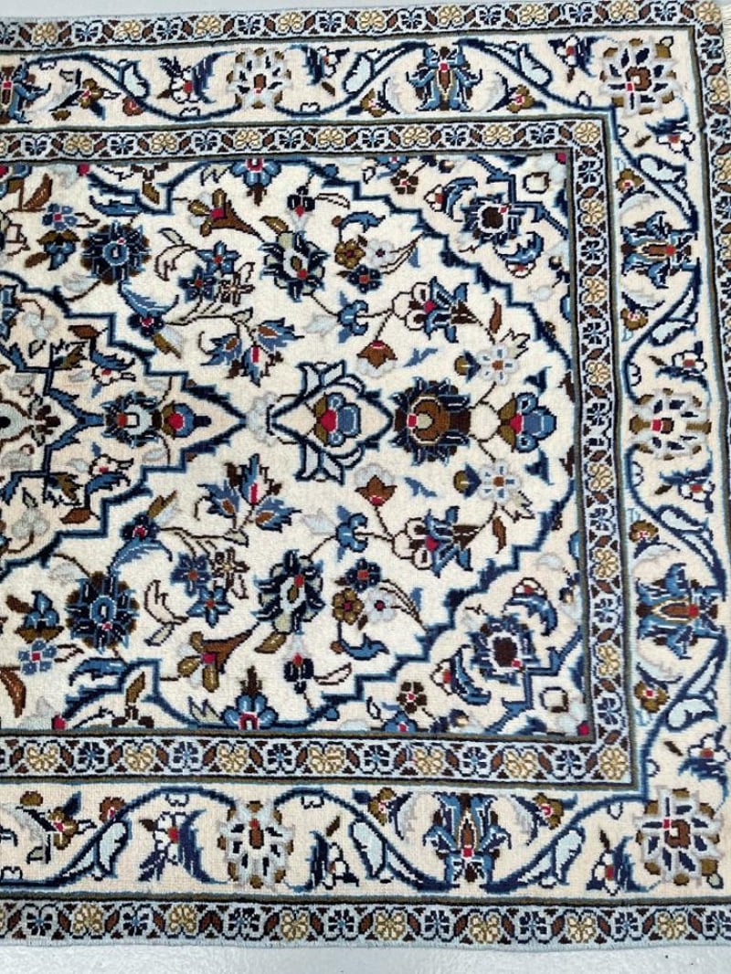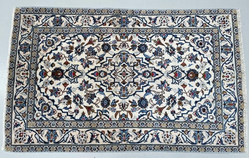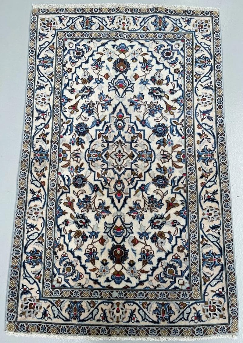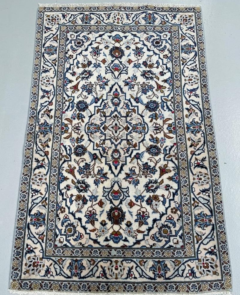 Pure Wool Beige Tone Hand Knotted Vintage Persian Kashan Rug 152X97Cm Central Persia+119