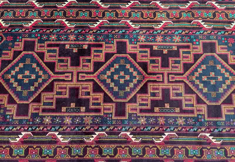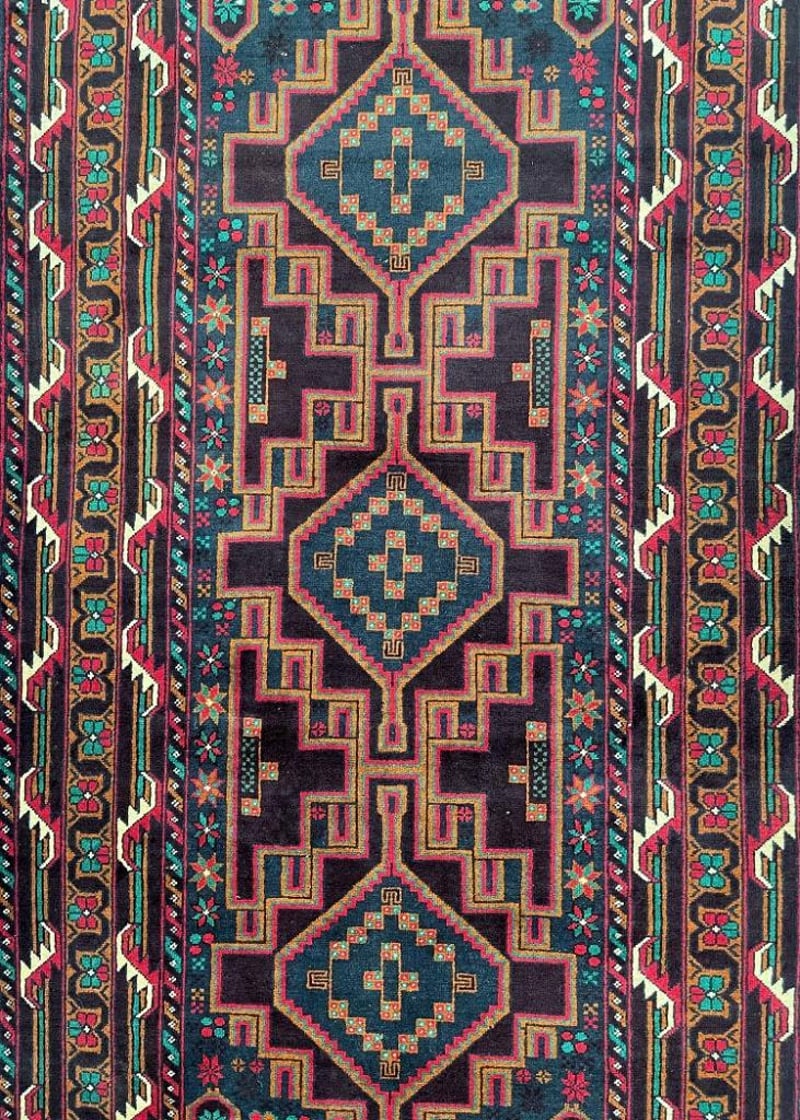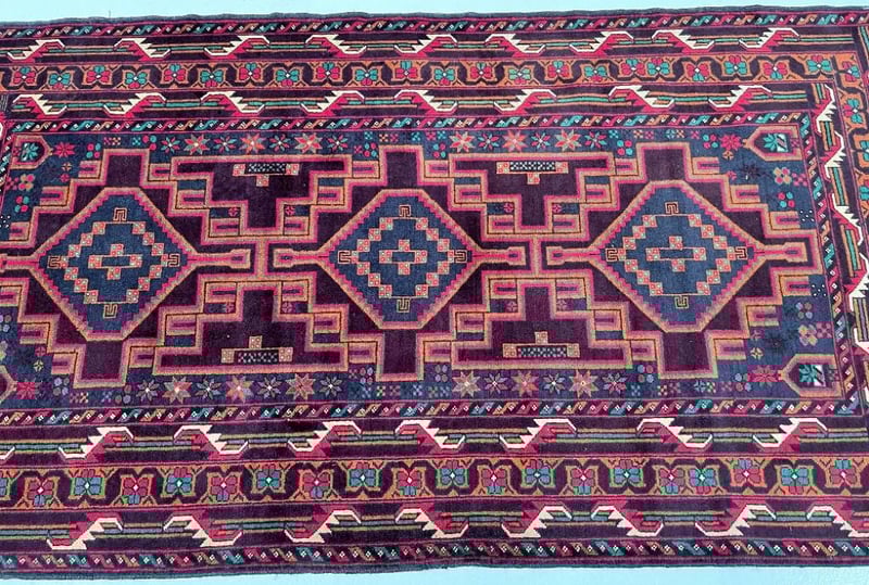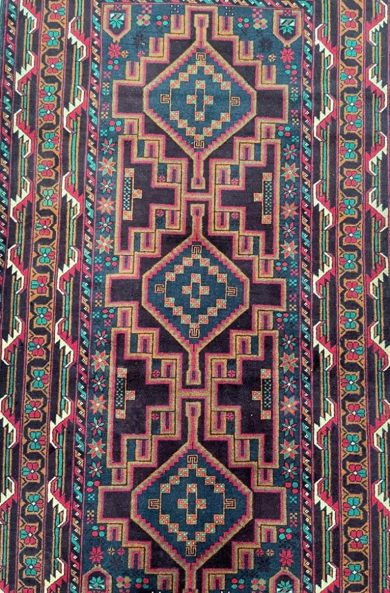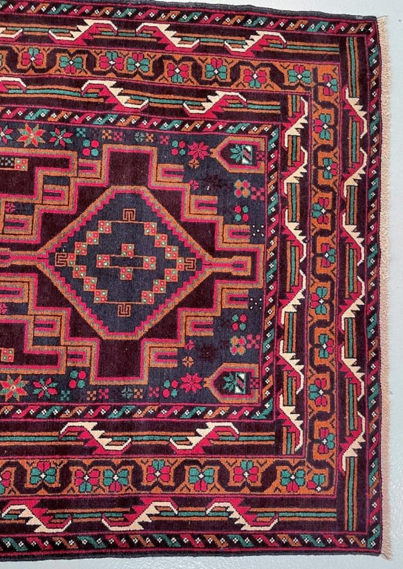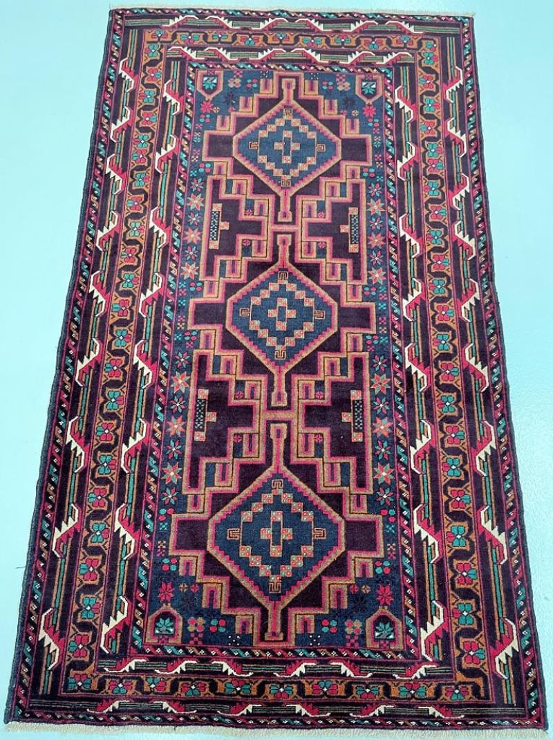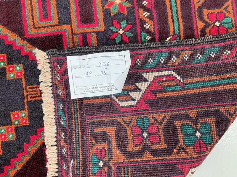 Pure Wool Tribal Hand Knotted Vintage Afghan Balouchi Rug 198X115Cm Afghanistan