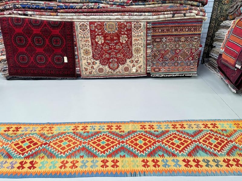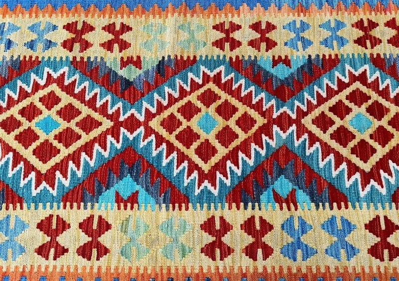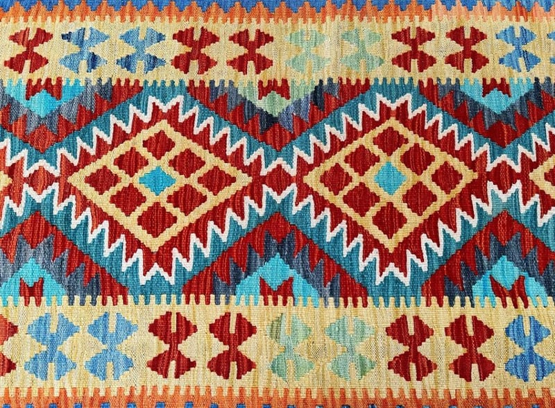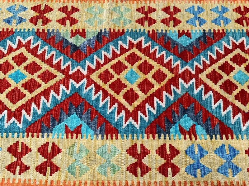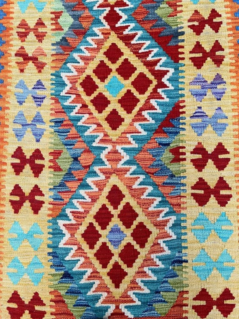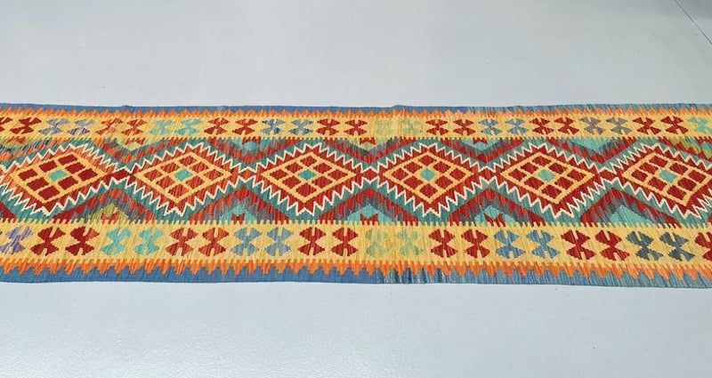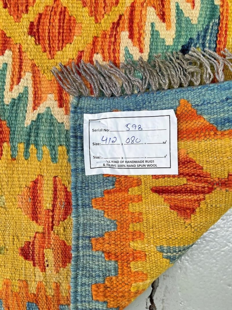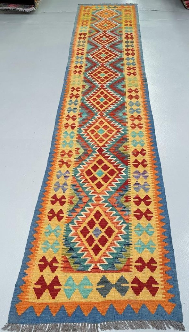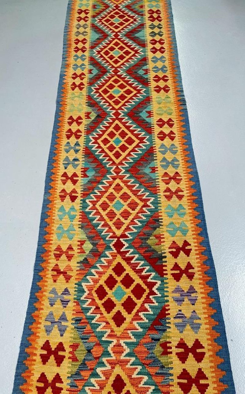 Pure Wool Geometric Hand Woven Afghan Kyber Kilim Hall Runner Rug 412X80Cm Afghanistan+113