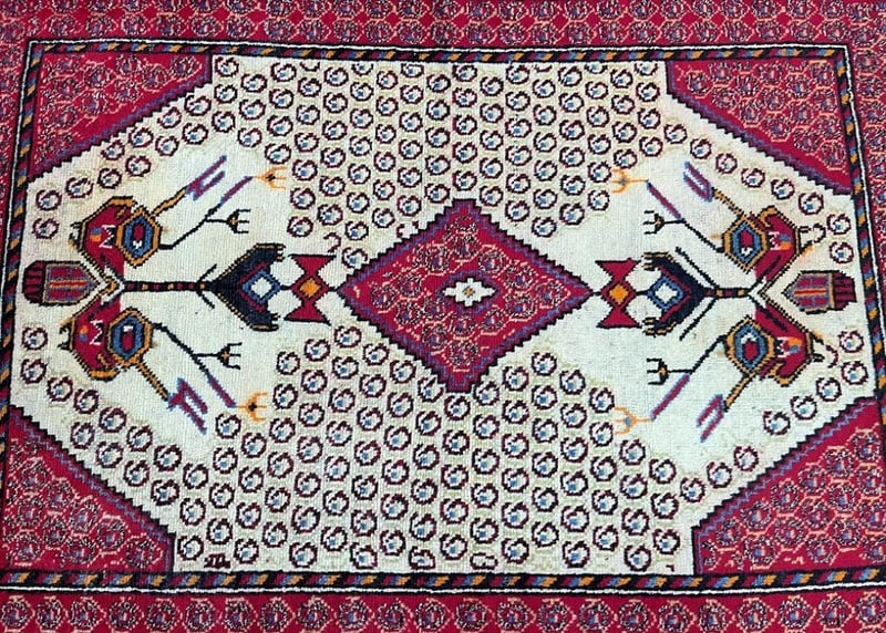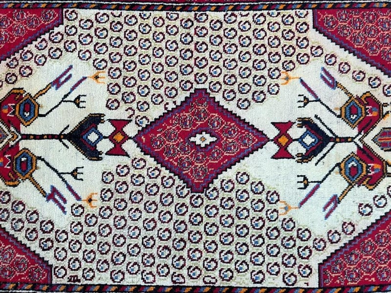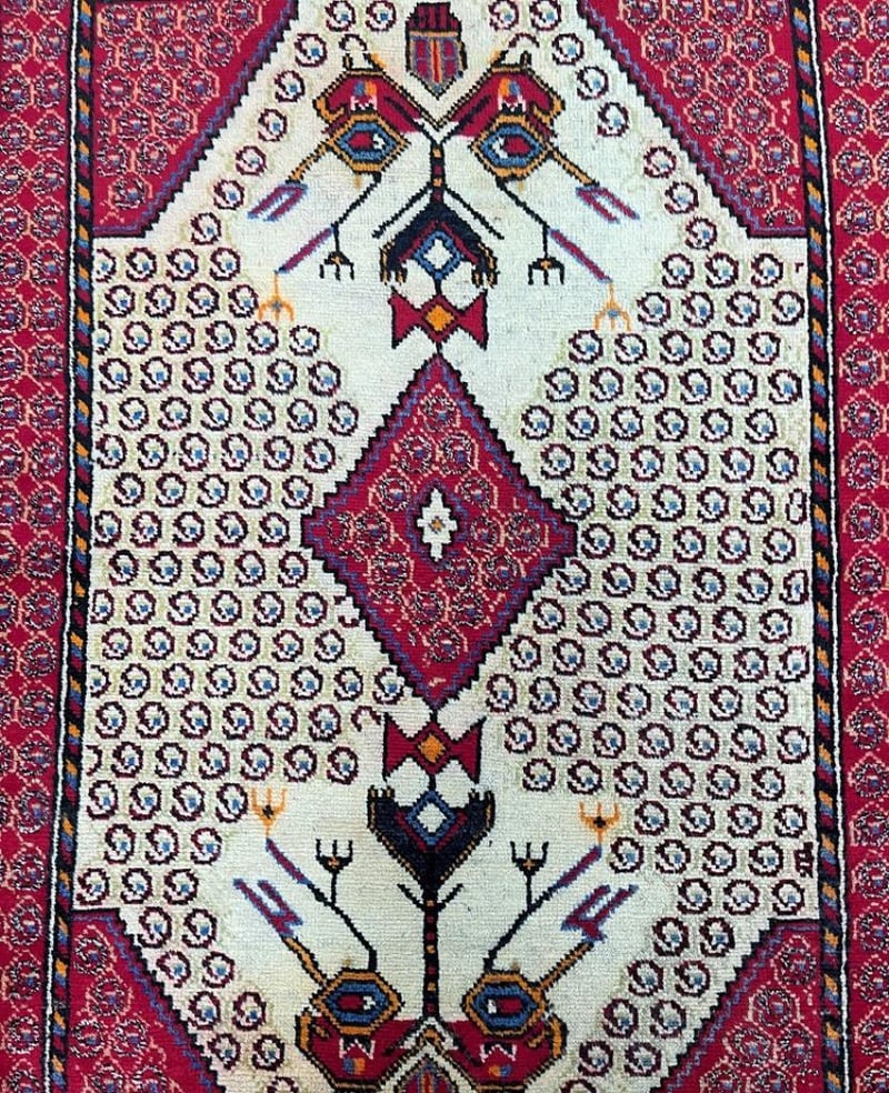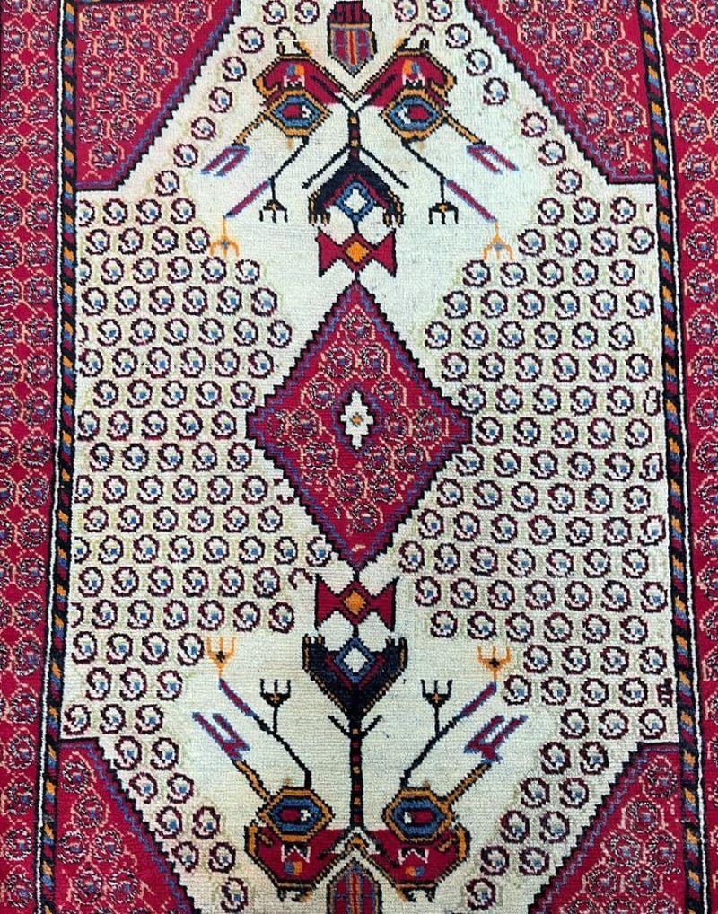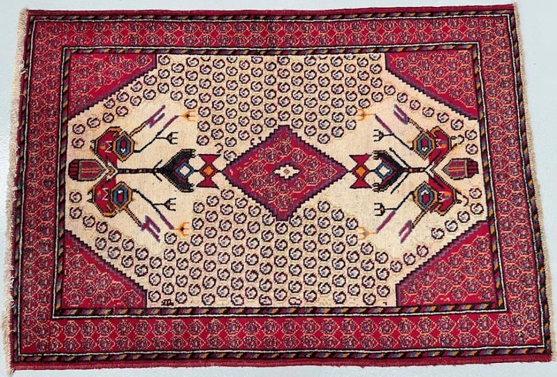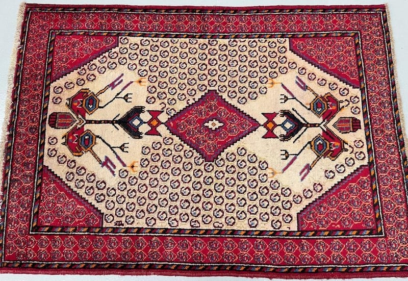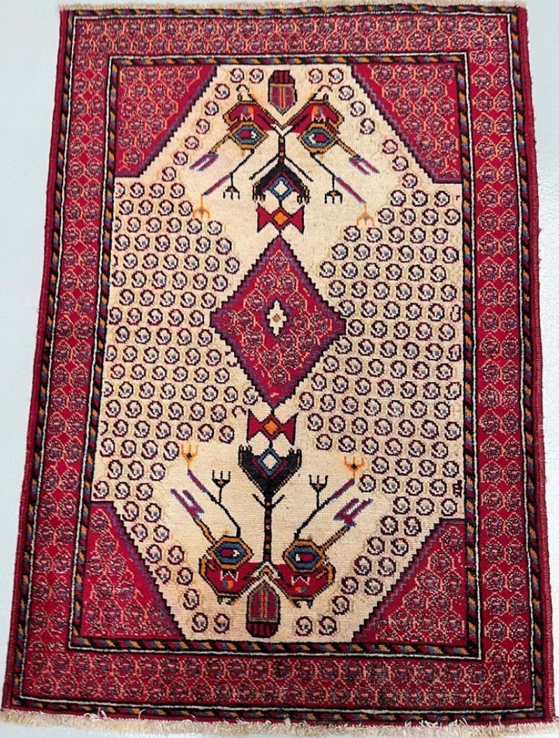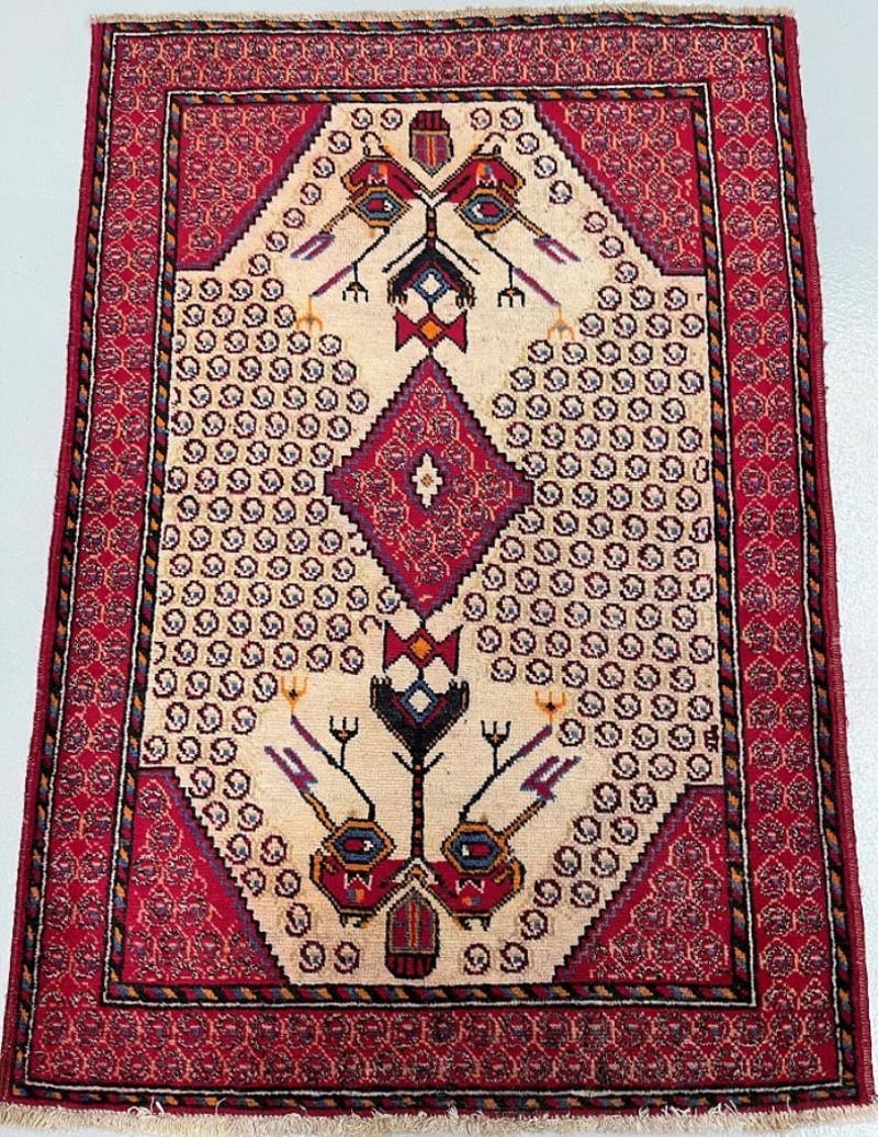 Paisley Design Wool Hand Knotted Vintage Persian Hamedan Rug 130X90Cm Central West Persia+80