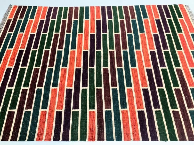 Pure Wool Contemporary Hand Woven Afghan Kyber Kilim Rug 214X151Cm Afghanistan+12