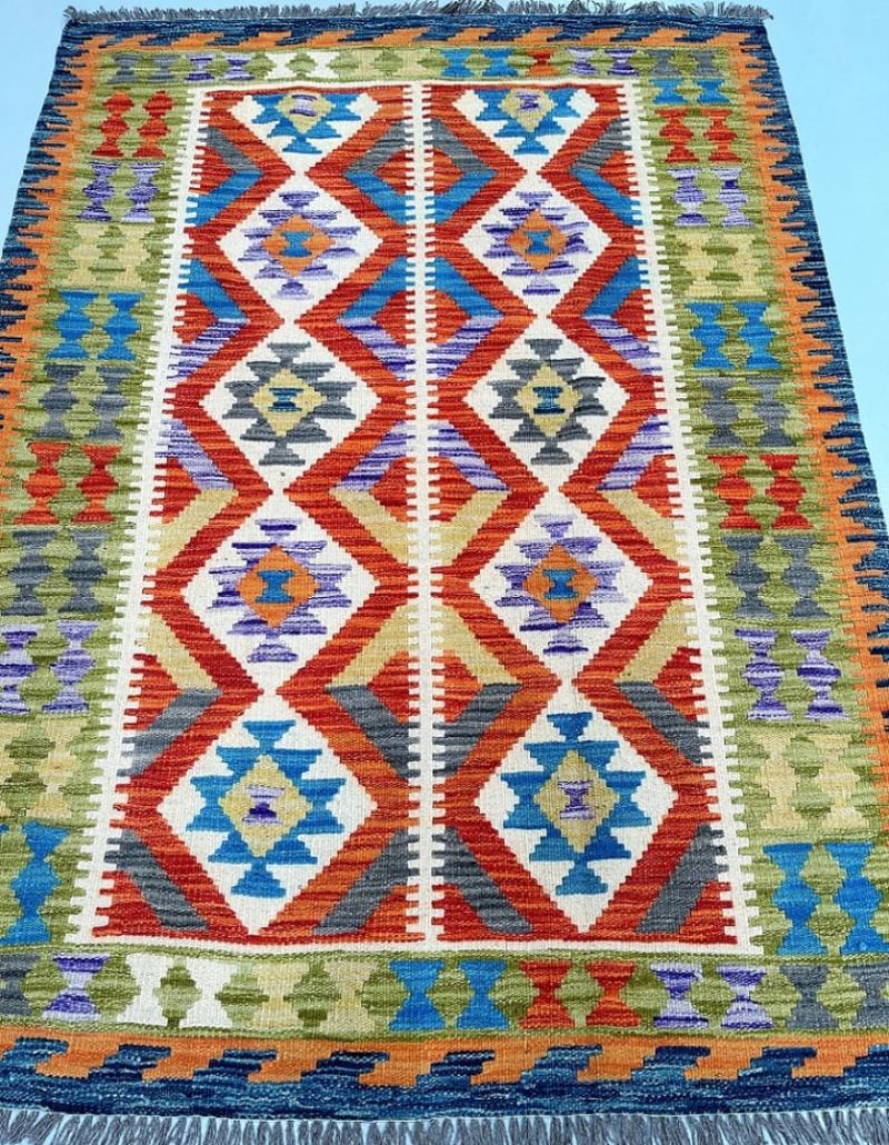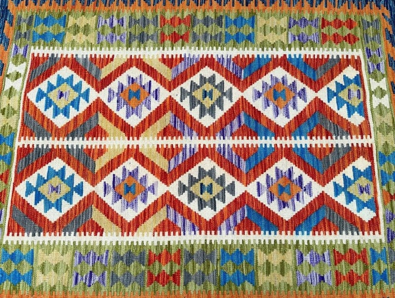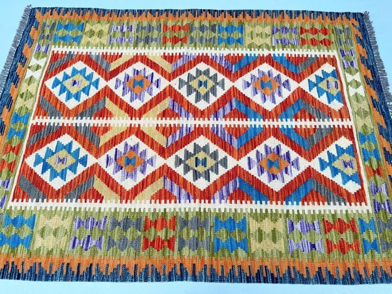 Pure Wool Boho Hand Woven Afghan Kyber Kilim Rug 178X131Cm Afghanistan+42