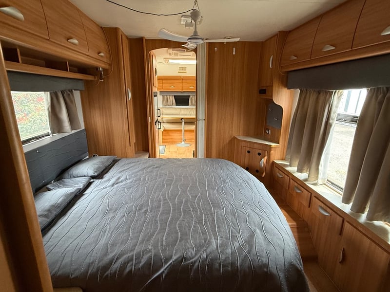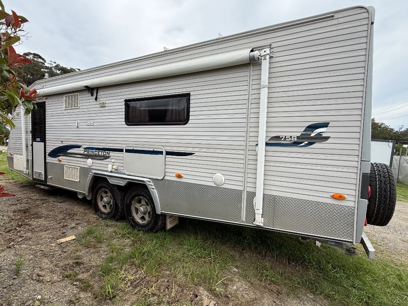 Description/ extras: Kitchenette, Dining/Lounge Area, Bathroom, Bedroom, Solar Panel 140 degrees, Full Annexe, 2 x TV's, DVD, Roof is Fibreglassed, 12v Ceiling Fan, Reconditioned Aircon, Full Stove, Large Shower, Full Bathroom with Clothes Hamper, Washing Machine, Large Fridge and Freezer, BBQ Gas Outside