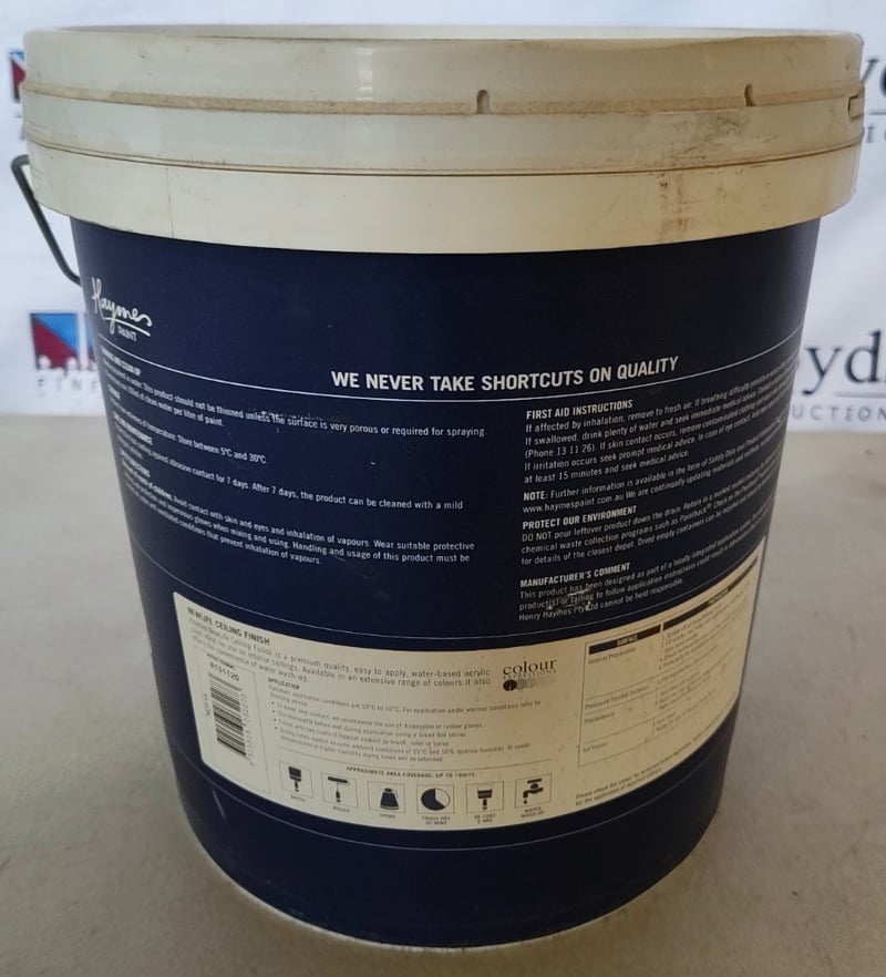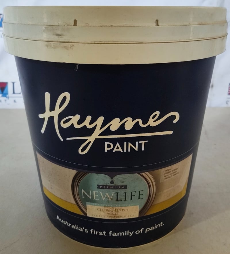 PAINT, HAYMES, PREMIUM NEW LIFE, INTERIOR CEILING FINISH, WATER WASH-UP, WHITE, 15L