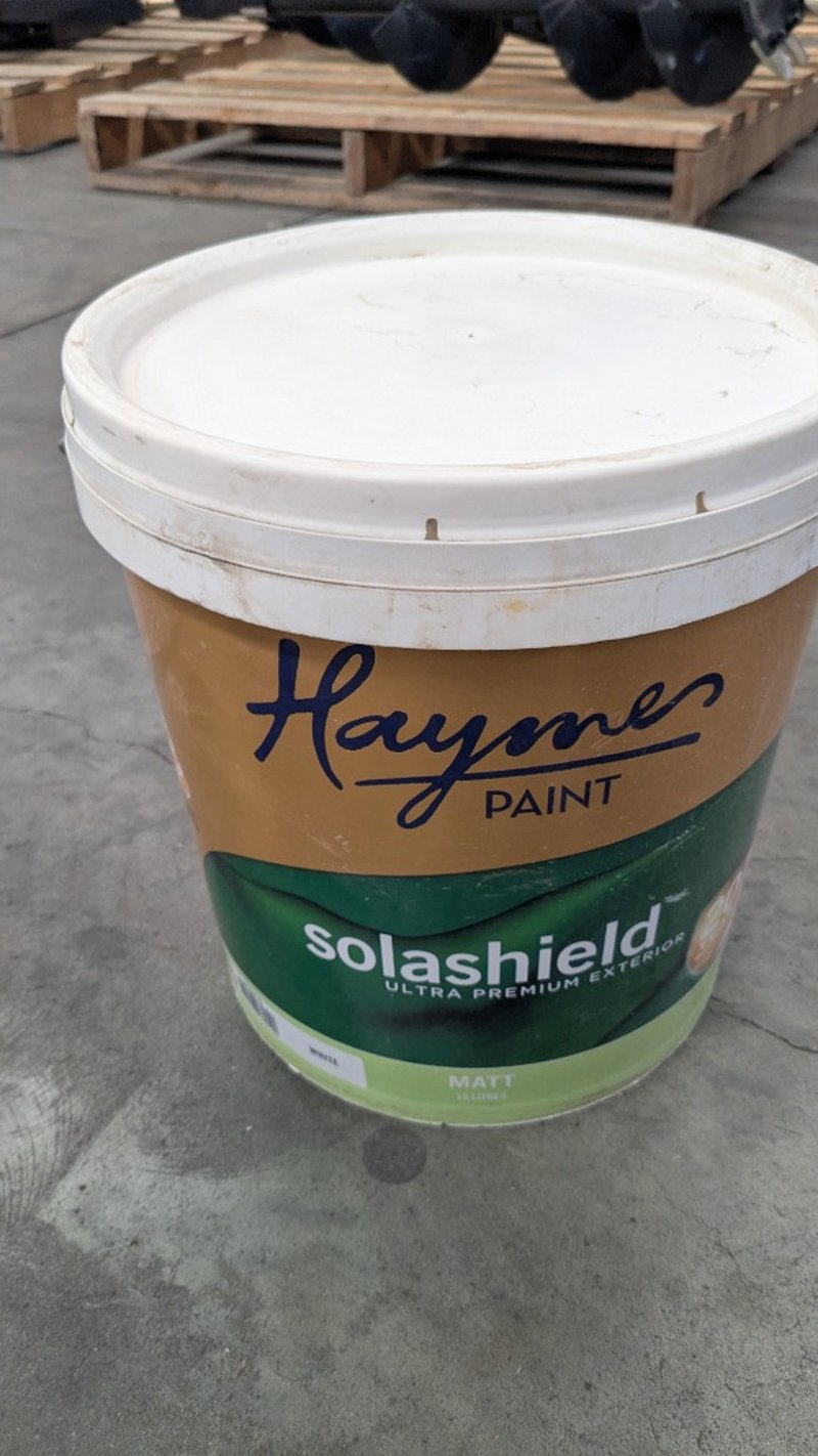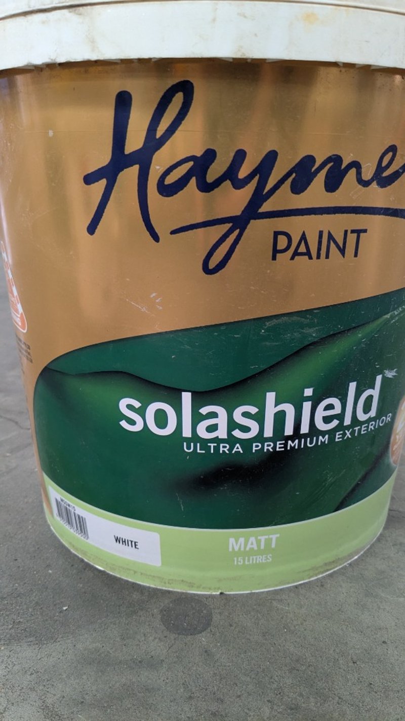 Paint, Haymes Paint, Solashield Ultra Premium Exterior, White, Matt, 15L BID PER LITRE MUST TAKE 15L