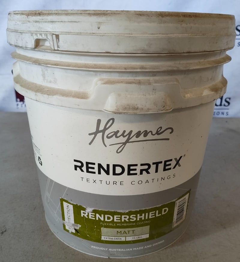 PAINT, HAYMES, RENDERTEX, RENDERSHIELD, FLEXIBLE MEMBRANE COATING, MATT, 15LBID PER LITRE, MUST TAKE 15 LITRES