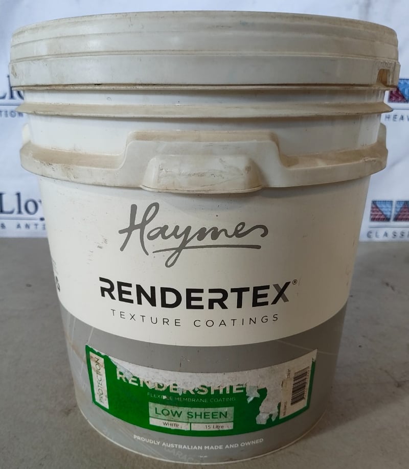 PAINT, HAYMES, RENDERTEX, RENDER SHIELD, FLEXIBLE MEMBRANE COATING, LOW SHEEN, WHITE, 15L