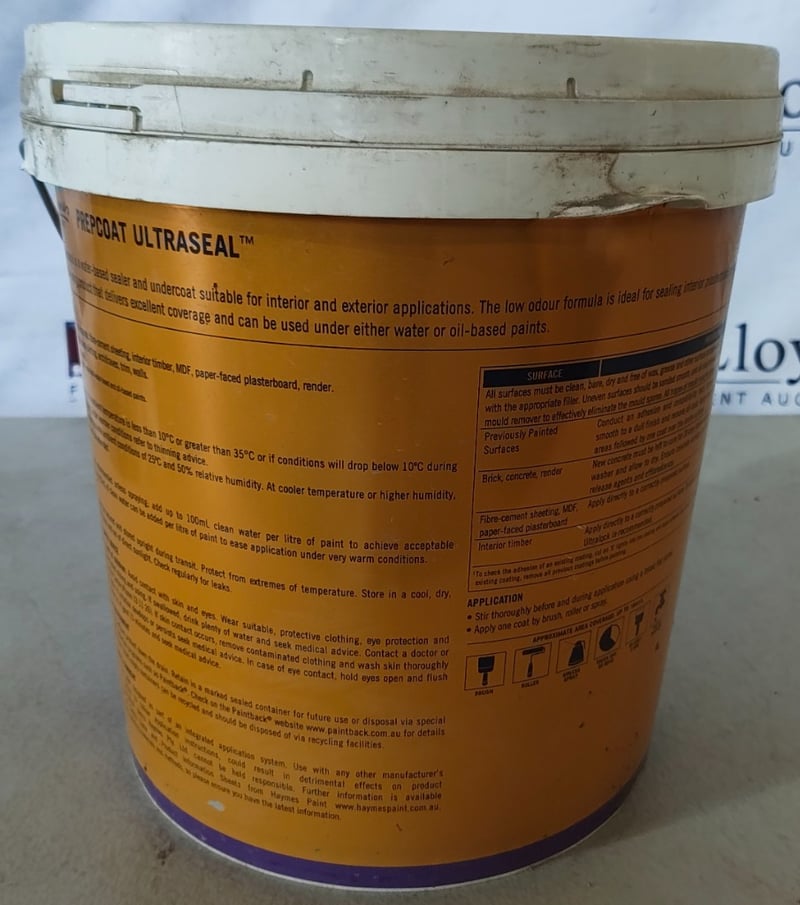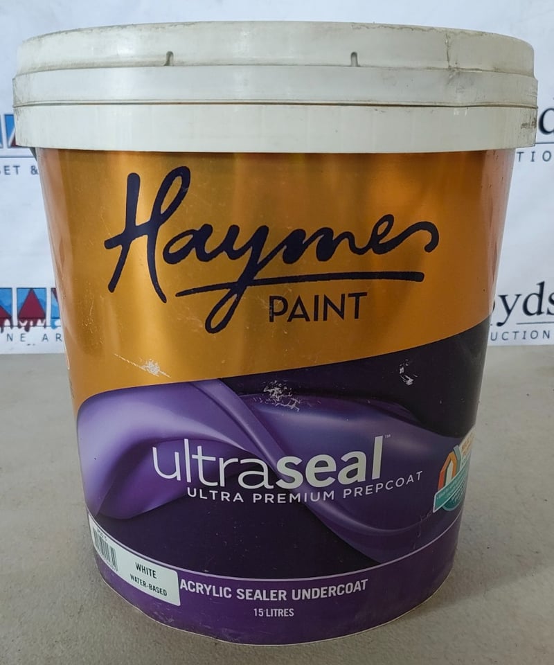 PAINT, HAYMES, ULTRASEAL, PREPCOAT, ACRYLIC SEALER UNDERCOAT, WATER-BASED, WHITE 15LBID PER LITRE, MUST TAKE 15 LITRES