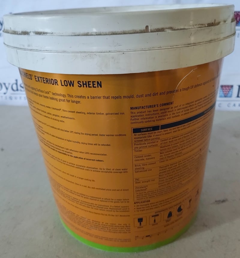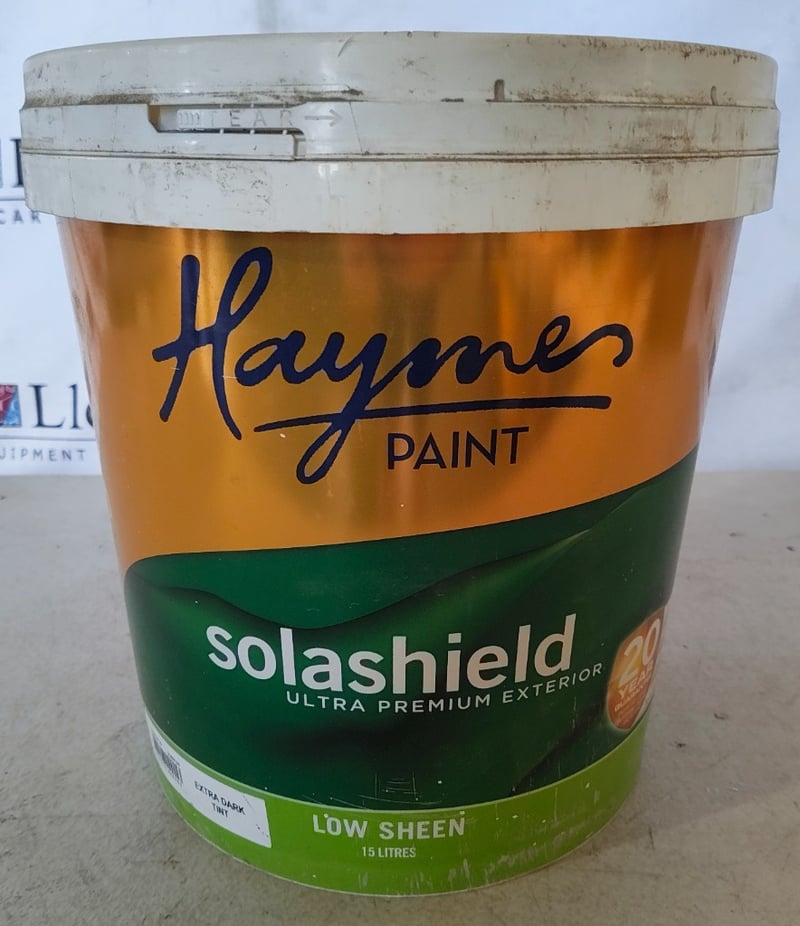 PAINT, HAYMES, SOLASHIELD, ULTRA PREMIUM EXTERIOR, LOW SHEEN, EXTRA DARK TINT, 15LBID PER LITRE, MUST TAKE 15 LITRES