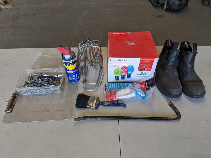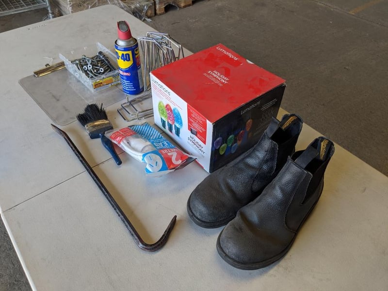 Workshop Essentials Mixed Lot - Size 8 Blundstone Steel Cap Boots, Lumination LED Lights, WD-40 Lubricant Spray and More