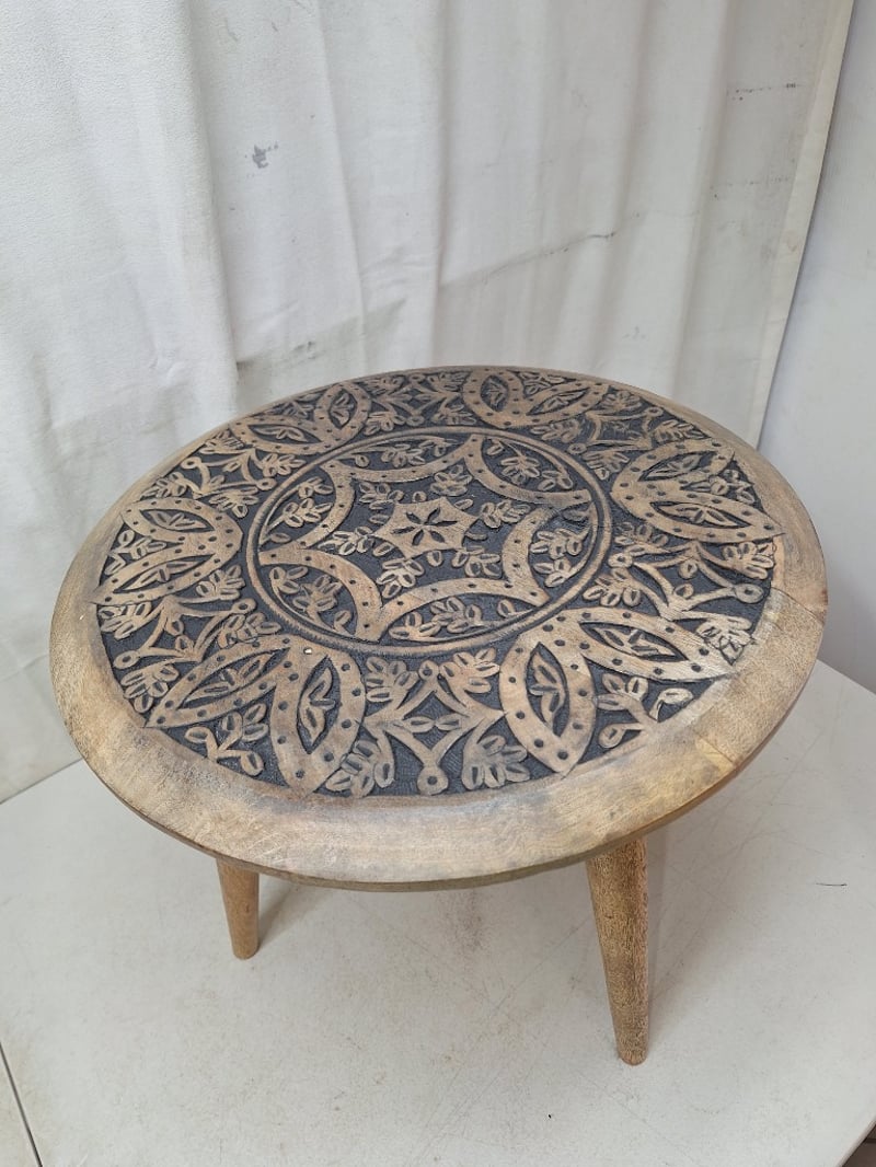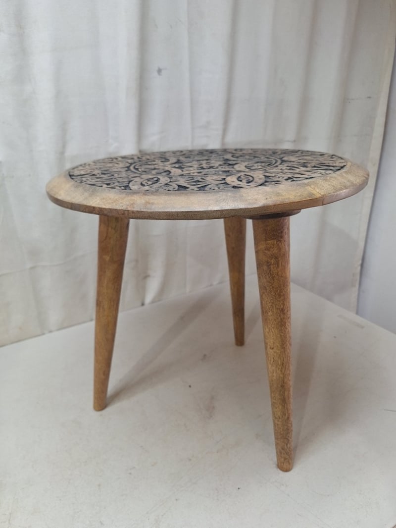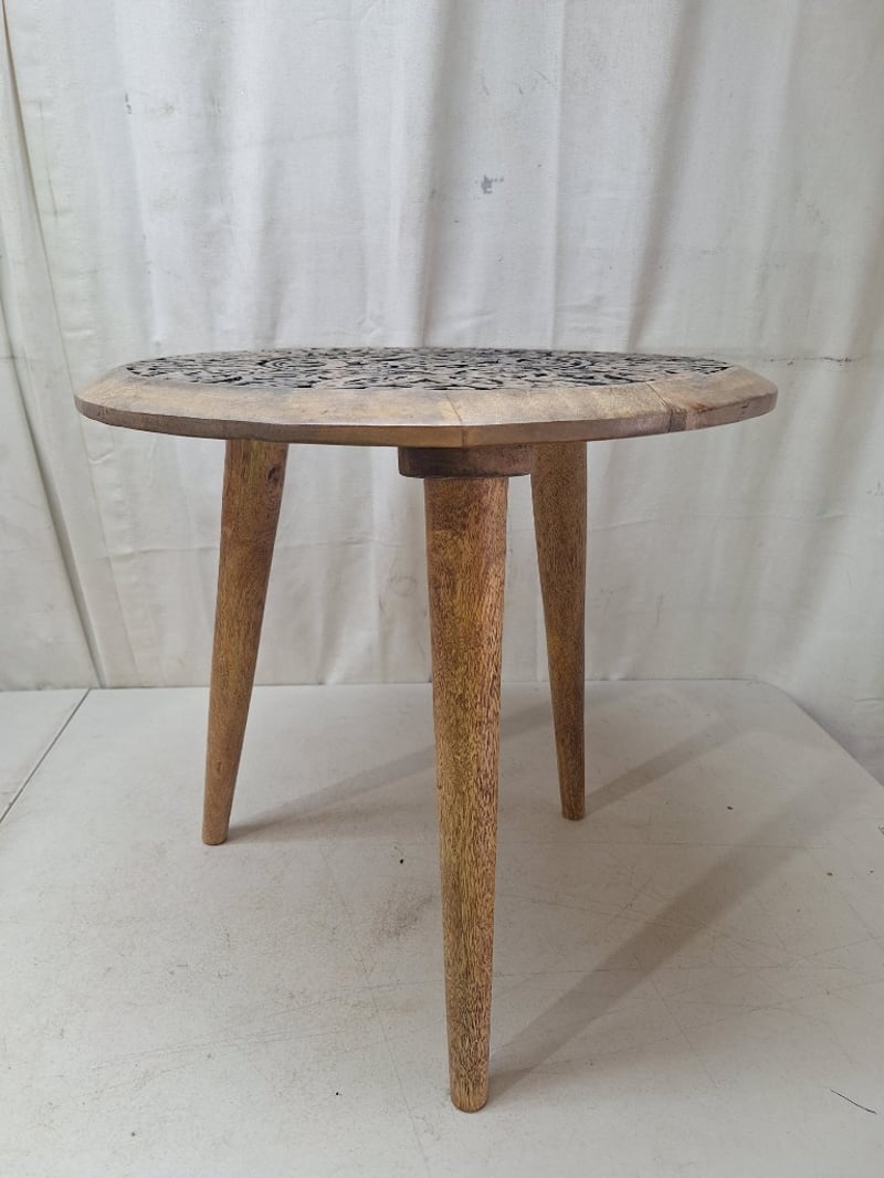 Side Table With Pattern On Top, Legs Screw In, Timber Style, Brown Finish