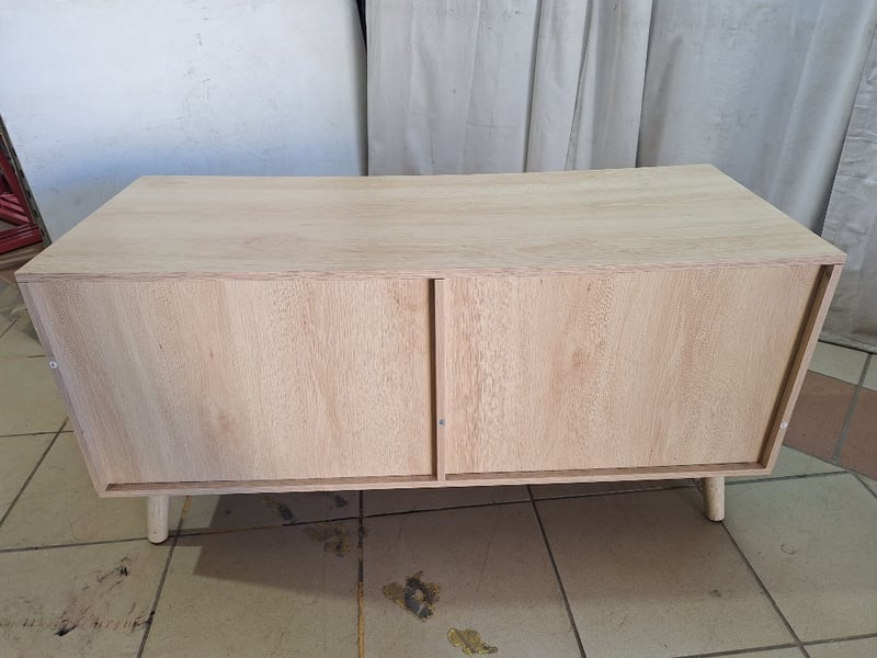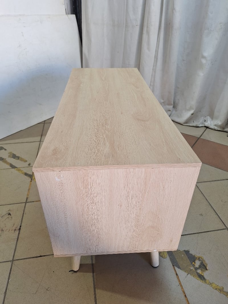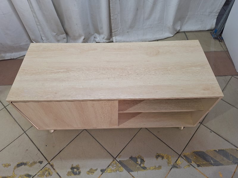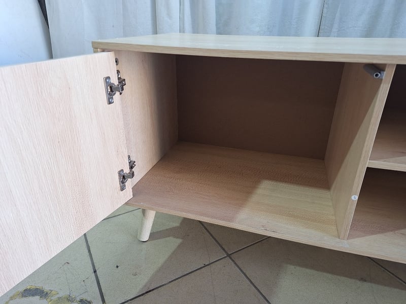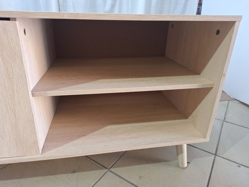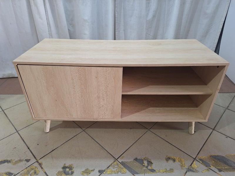 Entertainment Unit With 2 Shelfs & 1 Cabinet, Timber Style, Natural Finish