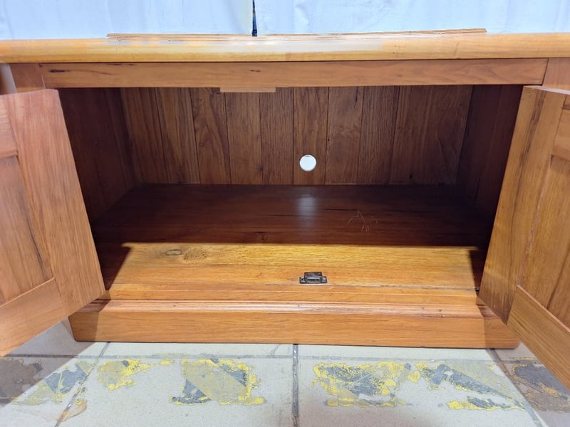 Entertainment Unit With Storage Cabinet, Timber Style, Brown Finish