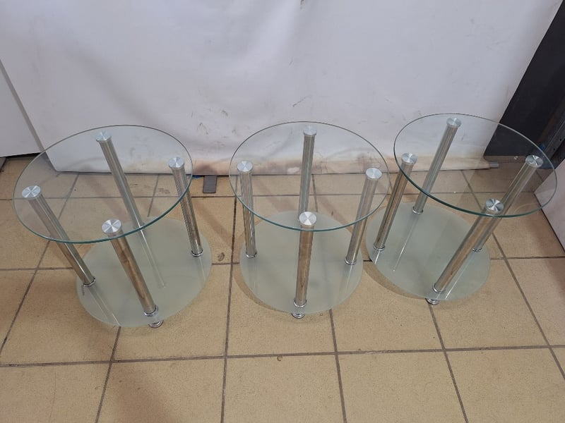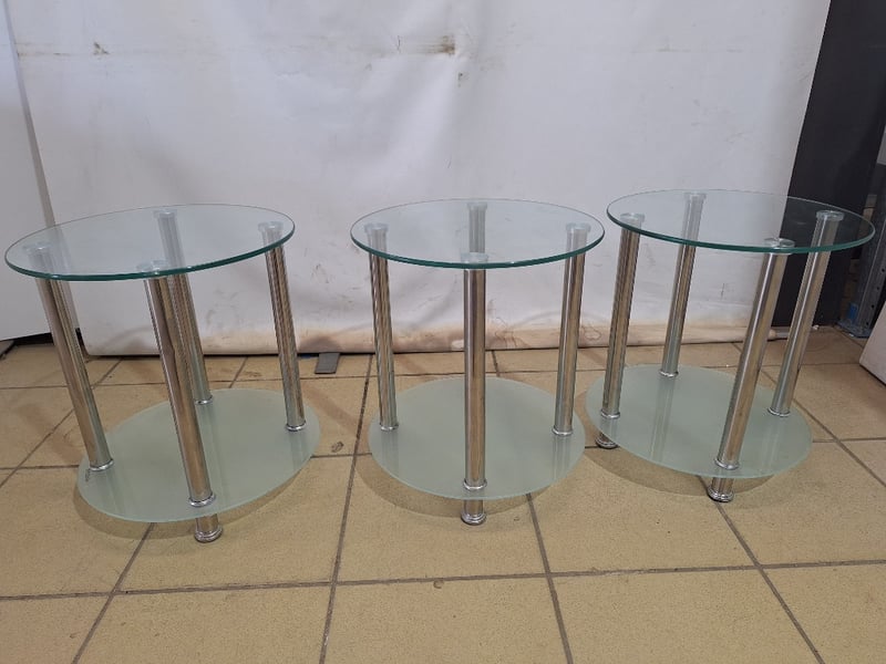 x3 Glass Coffee Tables, Metal StyleDimensions H:45cm W:40cm D:40cm