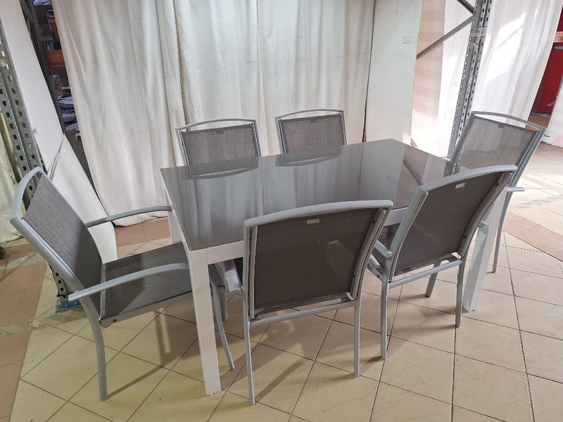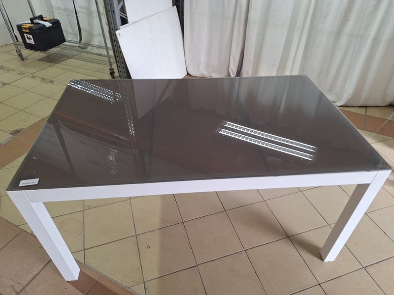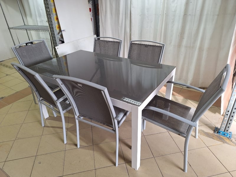 6-Seater Outdoor Dining Table, Glass Top, Metal Style