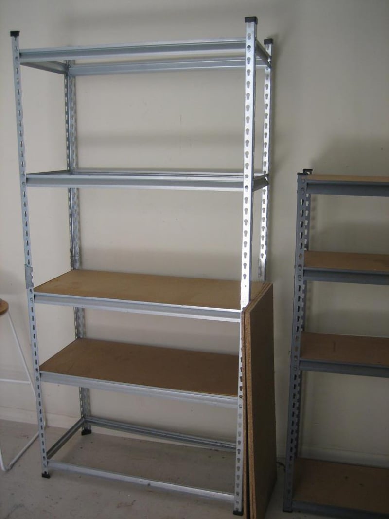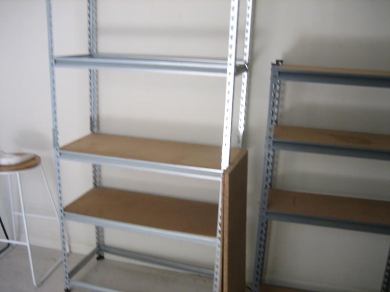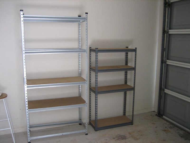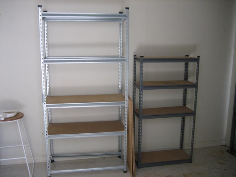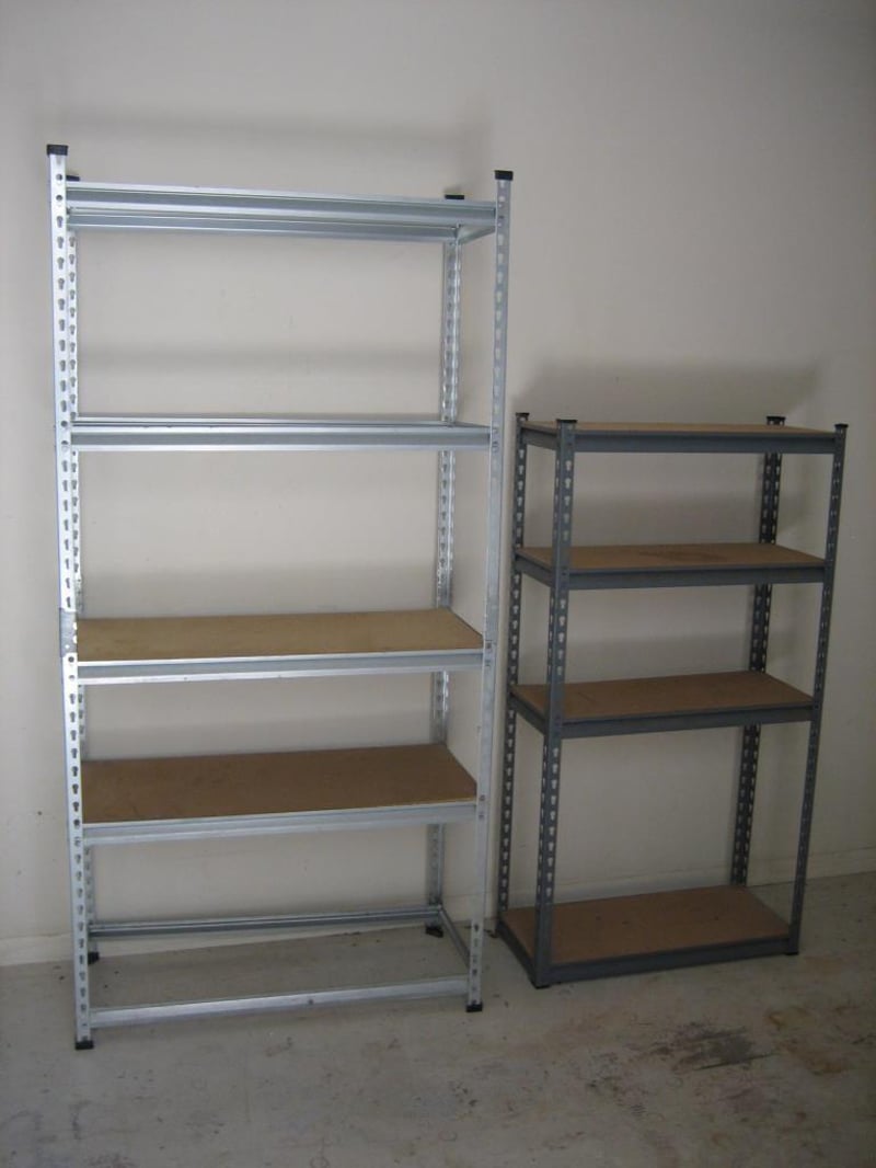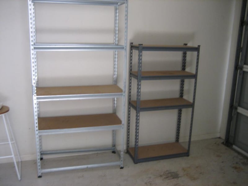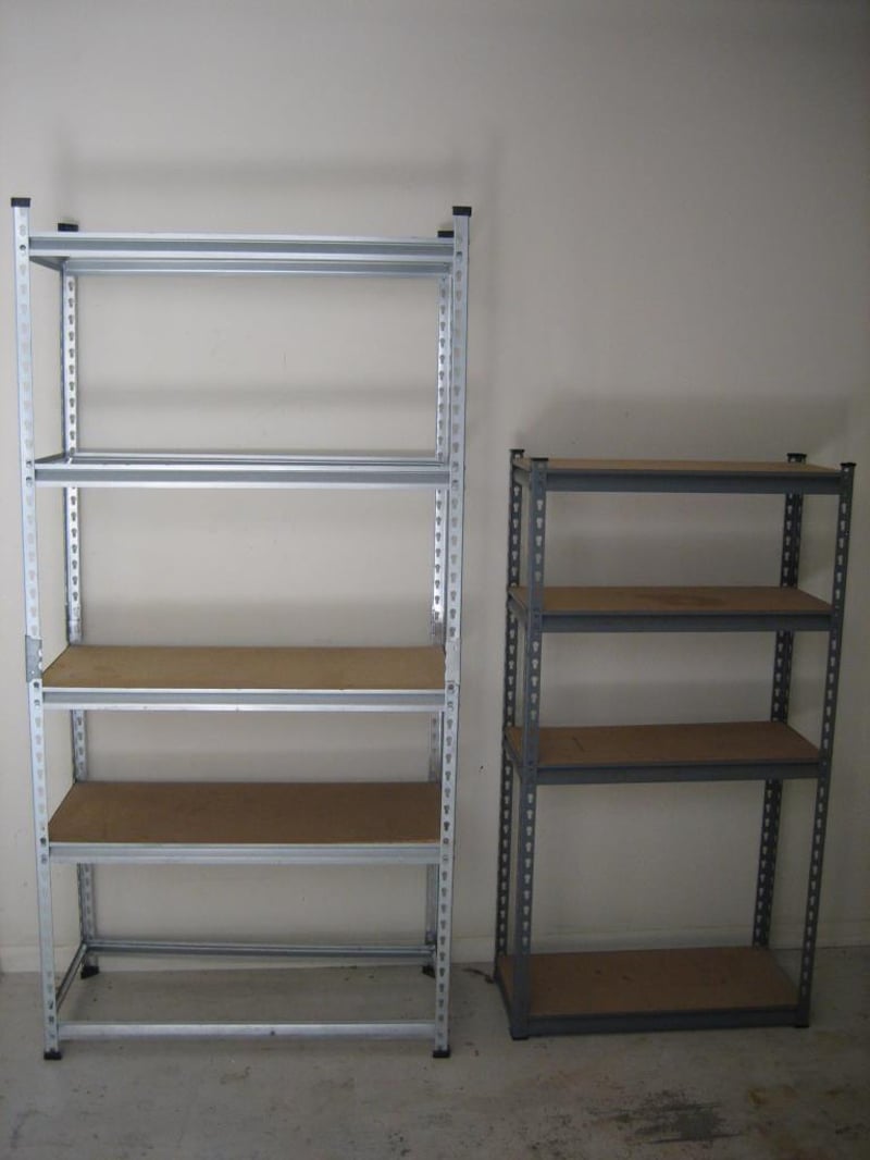 2x Garage shelving, 4 and 5 tier, galvanised.