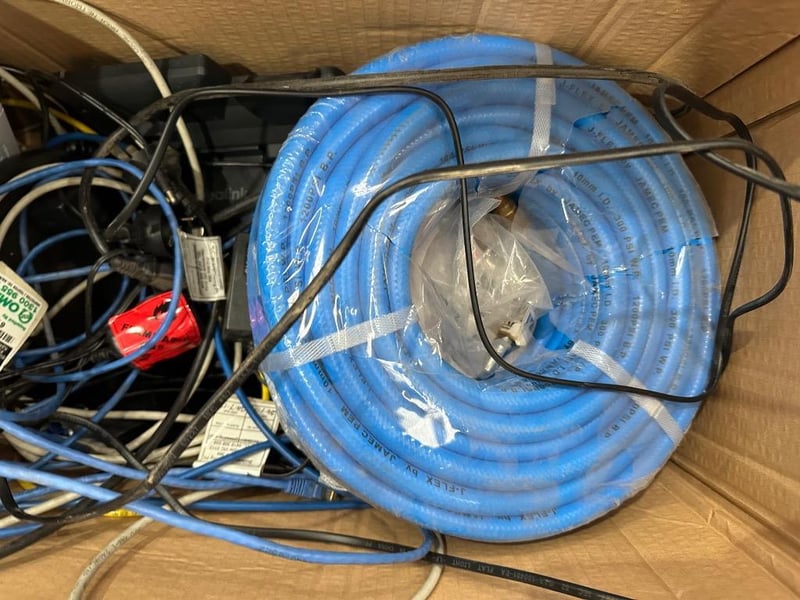 Assorted Equipment, Assorted Brands including J-Flex Air Hose, Scale, Telephone etc. Sold as lot.