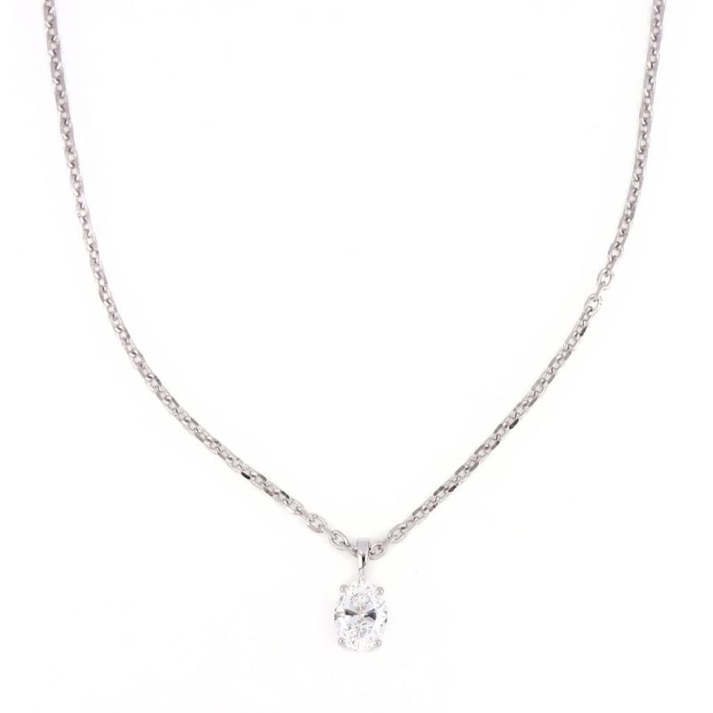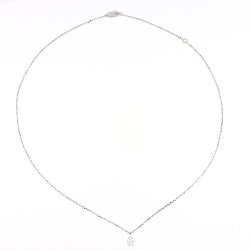 18K WHITE GOLD 0.5 CT LAB GROWN DIAMOND NECKLACE Total Item Weight: 3.77gms Size: 40-46cms Diamond Color: D Diamond Clarity:Vvs2 Crafted In 18K White Gold, This Necklace Features 0.5 Ct D Vvs2 Oval Cut Lab Grown Diamond.Igi Certificate Number: Lg683591384 Gross Weight: 3.77 Gms.Neckalce Size Is Adjustable To 18 Inch And 16 Inch Condition: Good - Refer Images 0488359+35