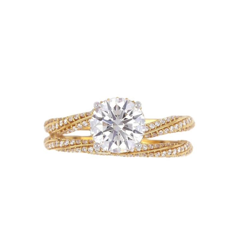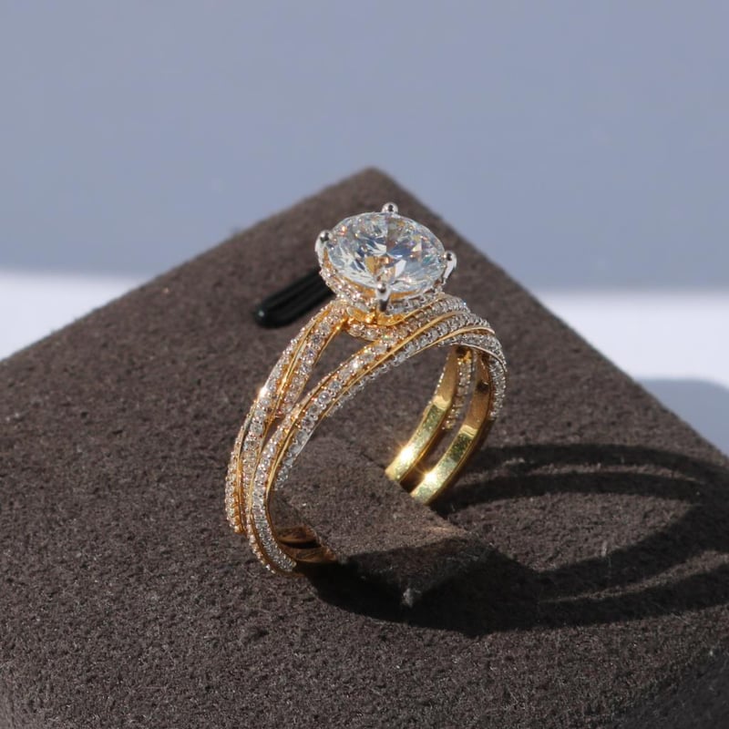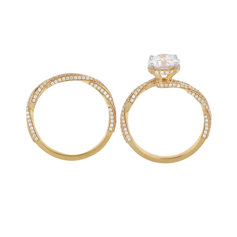 Crafted In 18K Yellow Gold, Duo Of Ring And Matching Eternity Band Features A Stunning Igi Certified 1.55 Ct F Vs1 Round Cut Lab Grown Diamond.