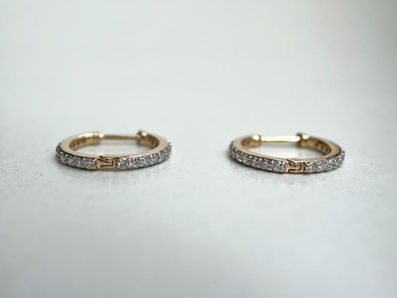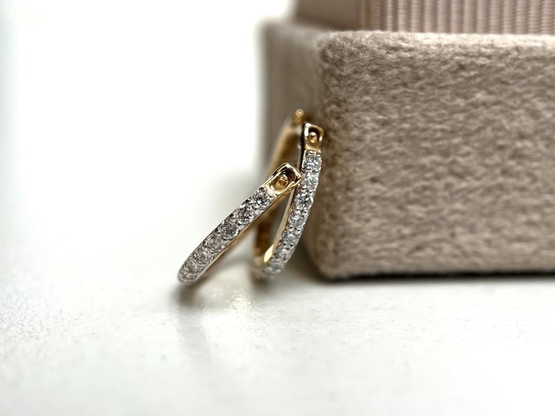 18K YELLOW GOLD LAB GROWN DIAMOND HUGGIE EARRING Total Item Weight: 1.65gms Diamond Color: D-E Diamond Clarity:Vvs-Vs Crafted In 18K Yellow Gold, This Huggie Earring Features Round Cut Lab Grown Diamonds.Dimensions: 14Mm X 1.6MmInternal Diameter: 10.5MmColor Clarity: D-E Vvs-VsTotal Diamond Weight: 0.35 Ct Gross Weight: 1.65 Gms. Approx Condition: Good - Refer Images 0488359+6