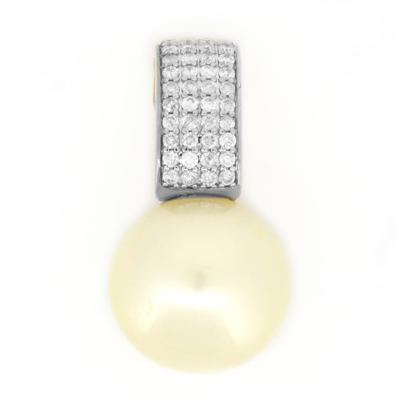 14K WHITE GOLD, WHITE CULTURED SOUTH SEA PEARL AND DIAMOND, DROP PENDANT. The Drop Features, One Near Round, Cream With Silver Overtones, Cultured South Sea Pearl (14.94Mm Size, Medium Lustre, Slightly Blemished). Decorating The Bail Are, 44 Round Brilliant Cut, Diamonds (0.62Ct Tdw, J-K Colour, Si2-I2 Clarity), Pave Set. Jewellery Valuations Provided By A Third Party Professional Not Directly Associated With Lloyds Auctions at AUD $12,390.00This Insurance Valuation has been provided by a registered Jewellery Valuer and is intended for insurance purposes only. The valuation amount has no bearing on the auction value of the item. Any questions regarding the valuation should be directed to the issuing Valuer (refer to contact details on the certificate) as Lloyds have no association or relationship with the Valuer or the valuation amount contained within the valuation. Condition: NEW 0645874+71