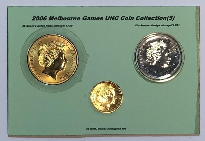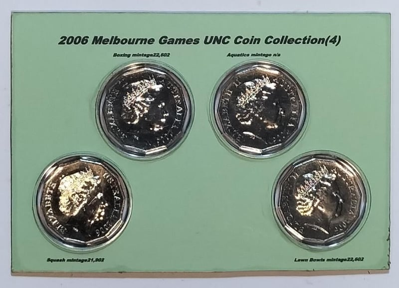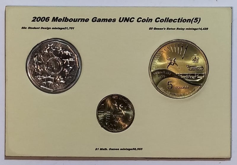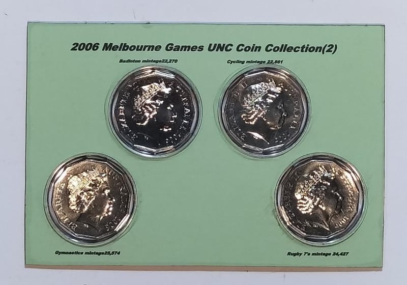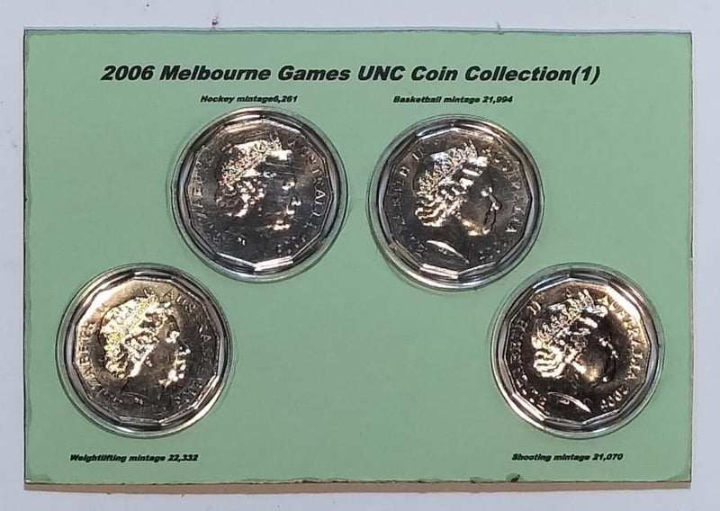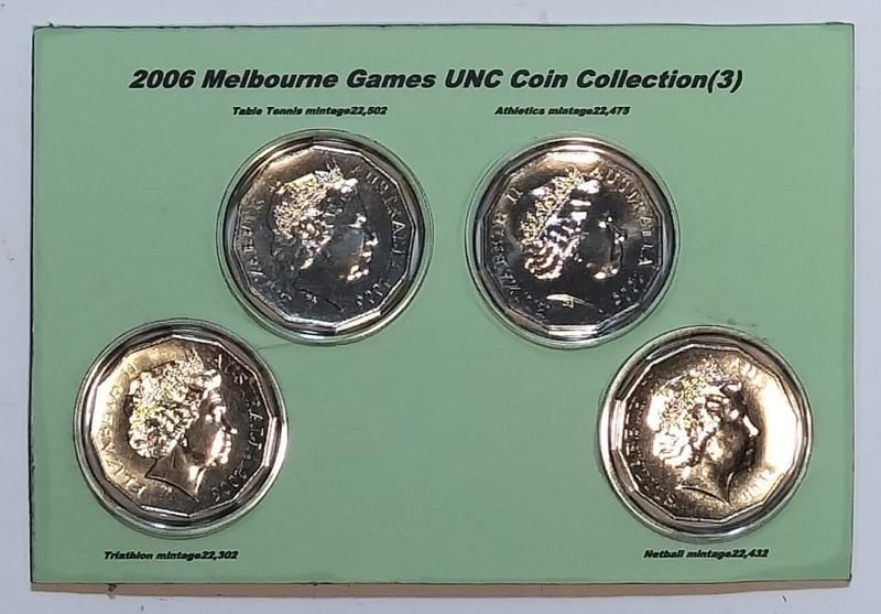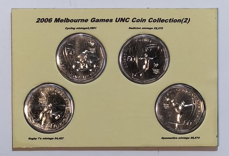 2006 MELBOURN XVIII COMMONWEALTH GAMES 50C COIN SET 16+3 Include: 16Xsport 50C; 1Xstudent Design 50C; 1X $5 Queen Baton Relay; And 1X$1 Melb.Games(Extra). 19 Coins In Total In 5 Penels.. All Coins Are Unc, Ex From Mint Card Condition: UNCEx Mint Folder/Roll488362+7